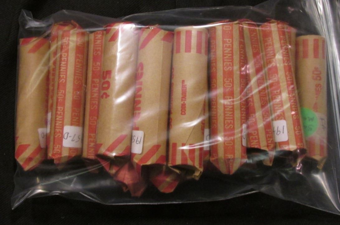 (950) Wheat & (100) Memorial Lincoln Cents in paper wrappers, circulated.