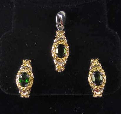 9515 - STERLING SILVER CHROME GREEN DIOPSIDE PENDANT & EARRINGS SET