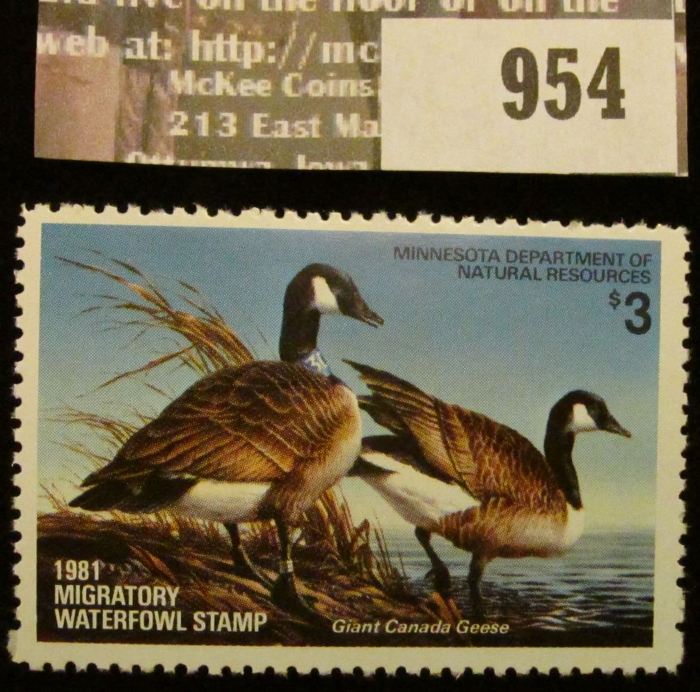 1981 Minnesota Migratory Waterfowl Stamp Minnesota Department of Natural Resources depicting Canadian Geese, unsigned, MN5, not hinged.