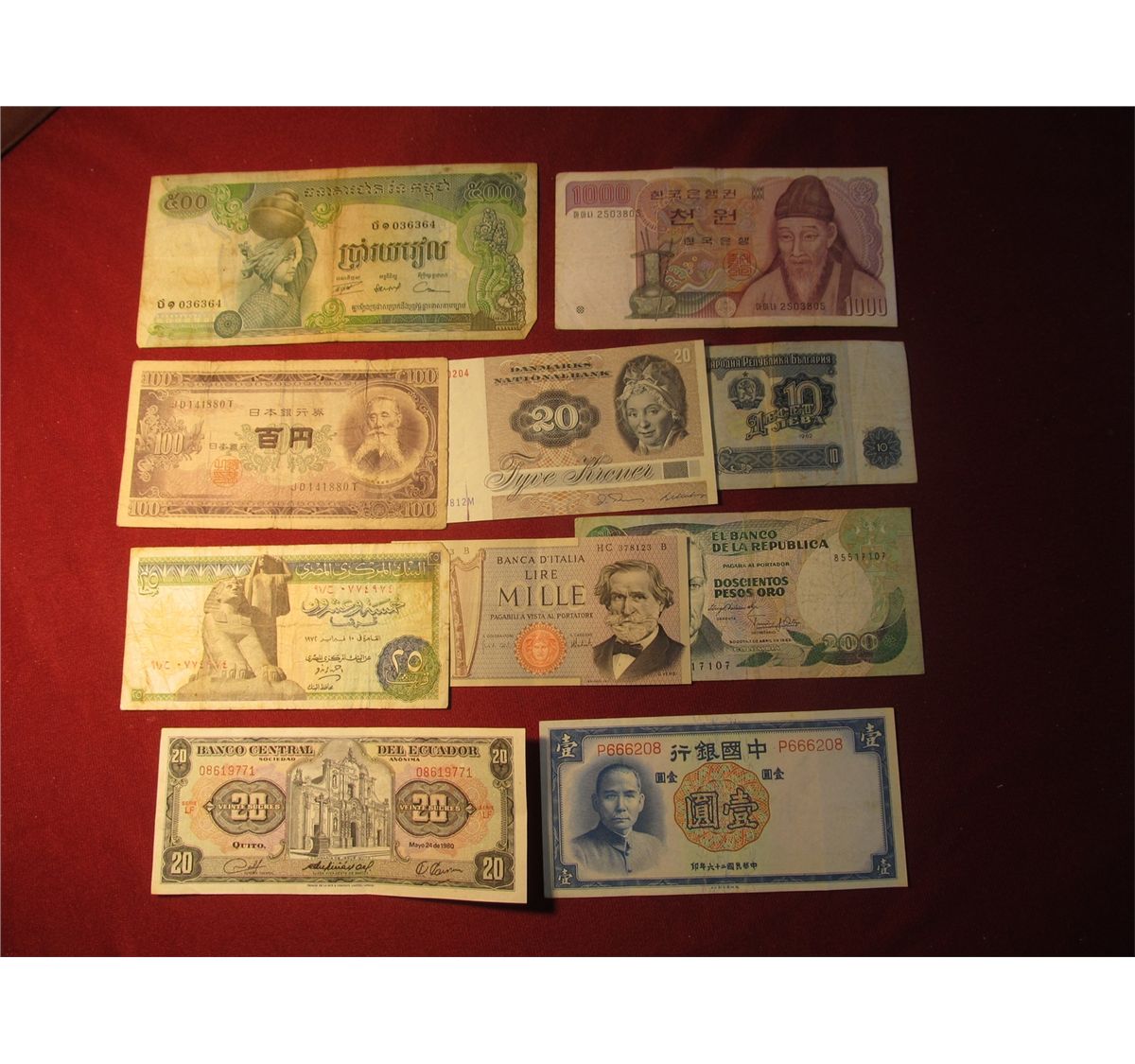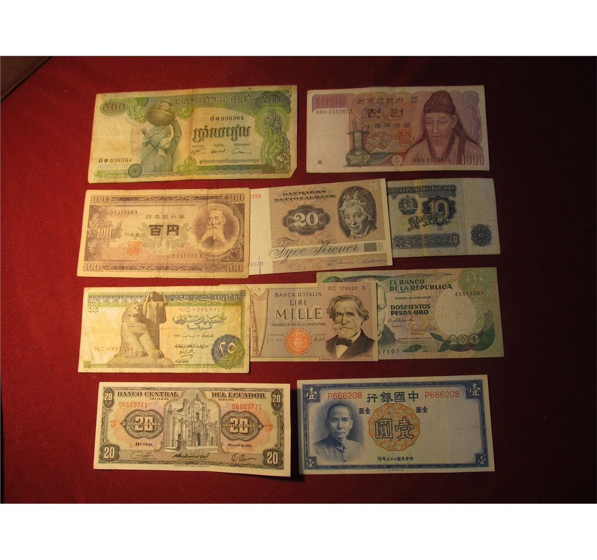 955. 10 (ten) mixed World Banknotes, WWII era to present