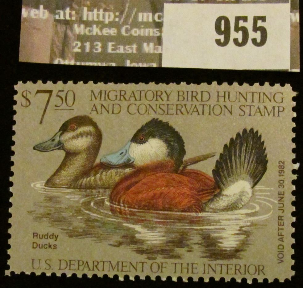 955 _ 1981 RW # 49, $7.50 U.S. Department of Agriculture Migratory Bird Hunting Stamp, unsigned, not