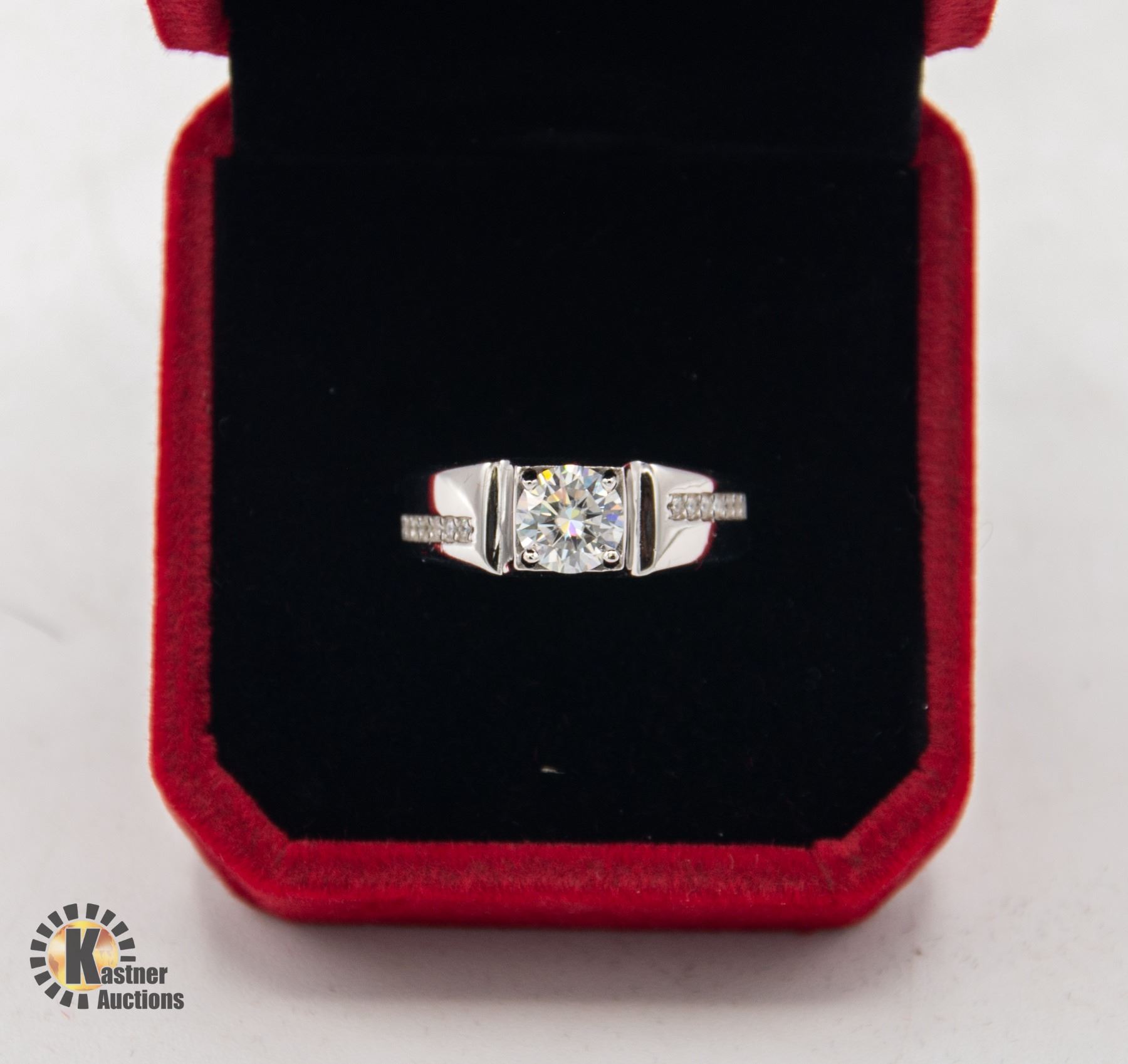 MOISSANITE STONE VVS D COLOR SET IN CENTER OF MENS RING IN 925 SILVER RING SIZE ADJUSTABLE RETAIL VALUE $700.00