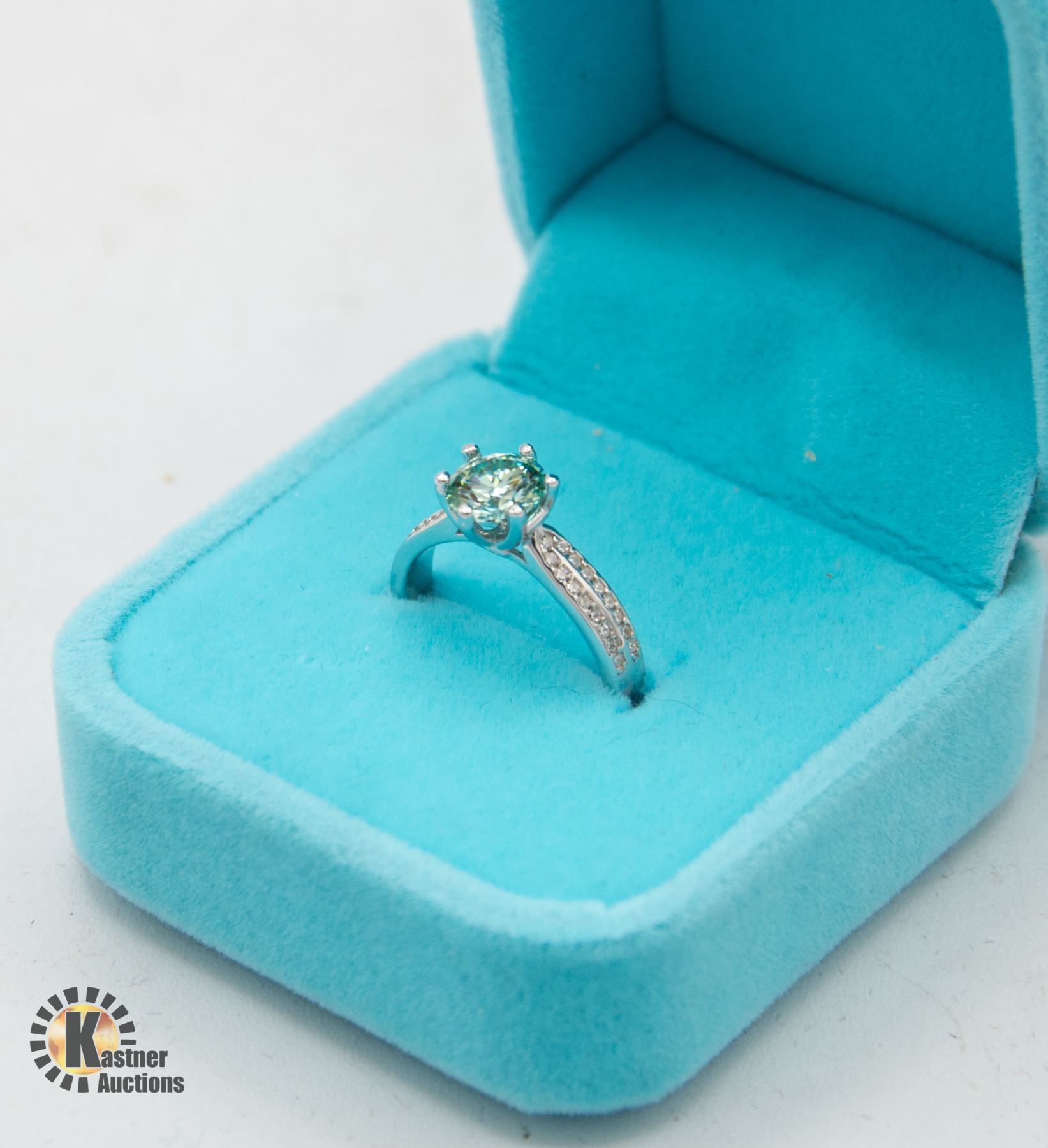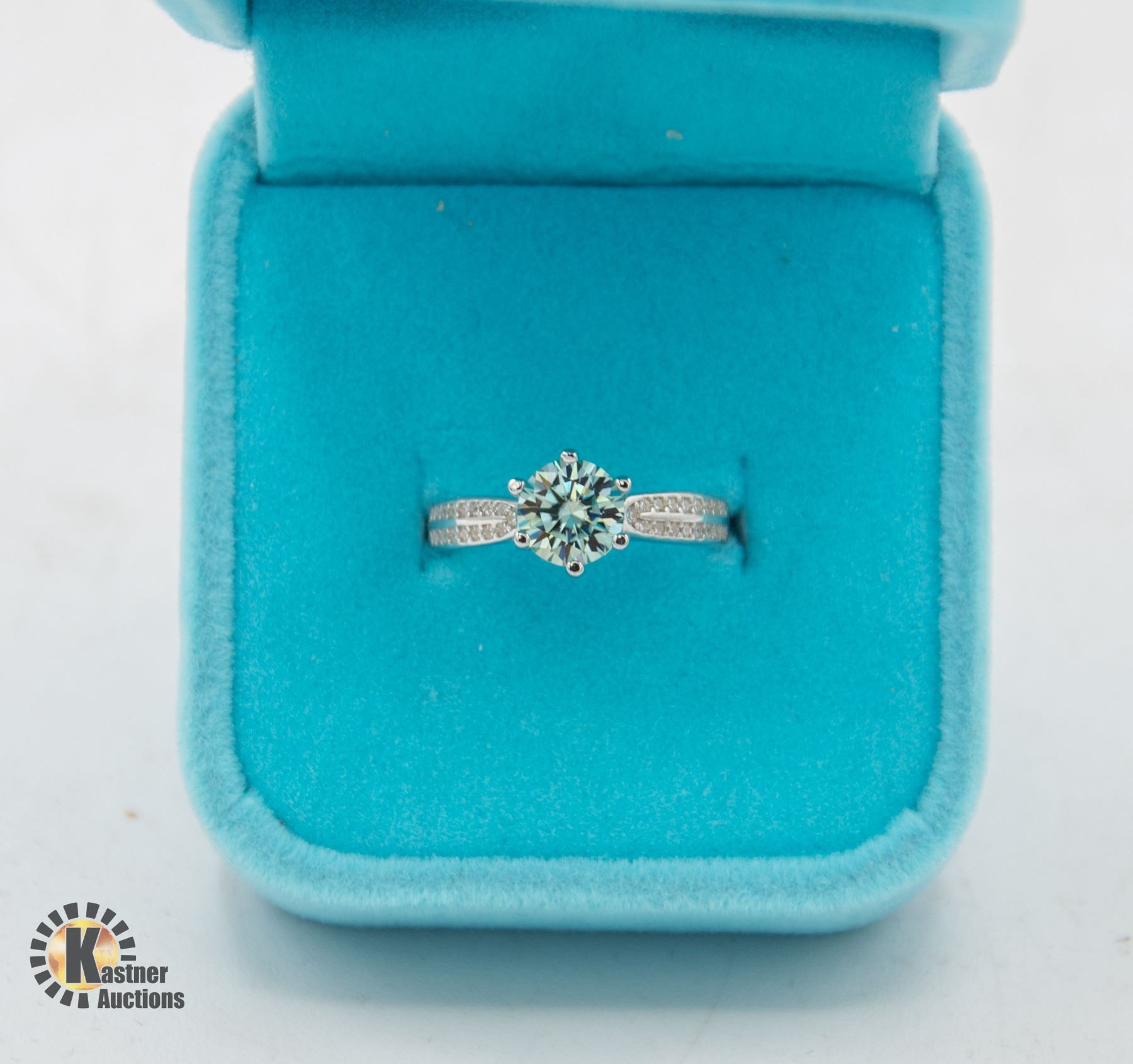 MOISSANITE VVS BLUE COLOR SET IN CENTER OF 925 SILVER RING SIZE 5 RETAIL VALUE $725.00