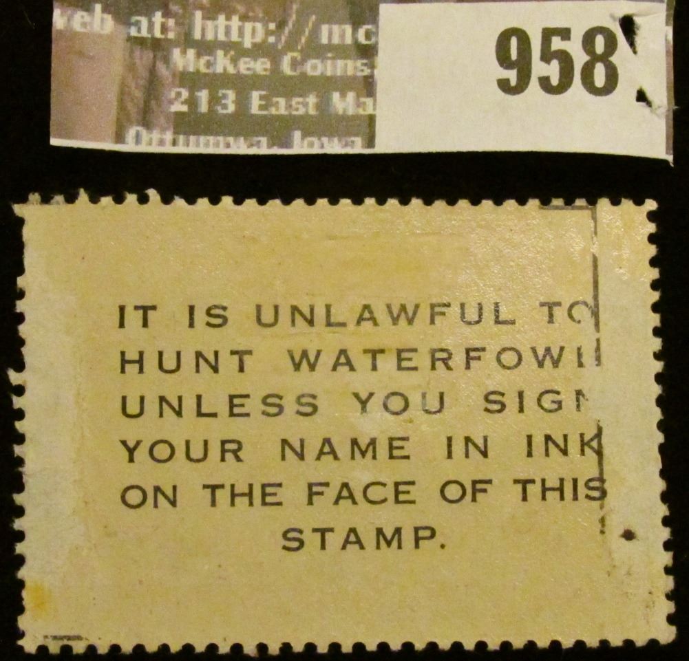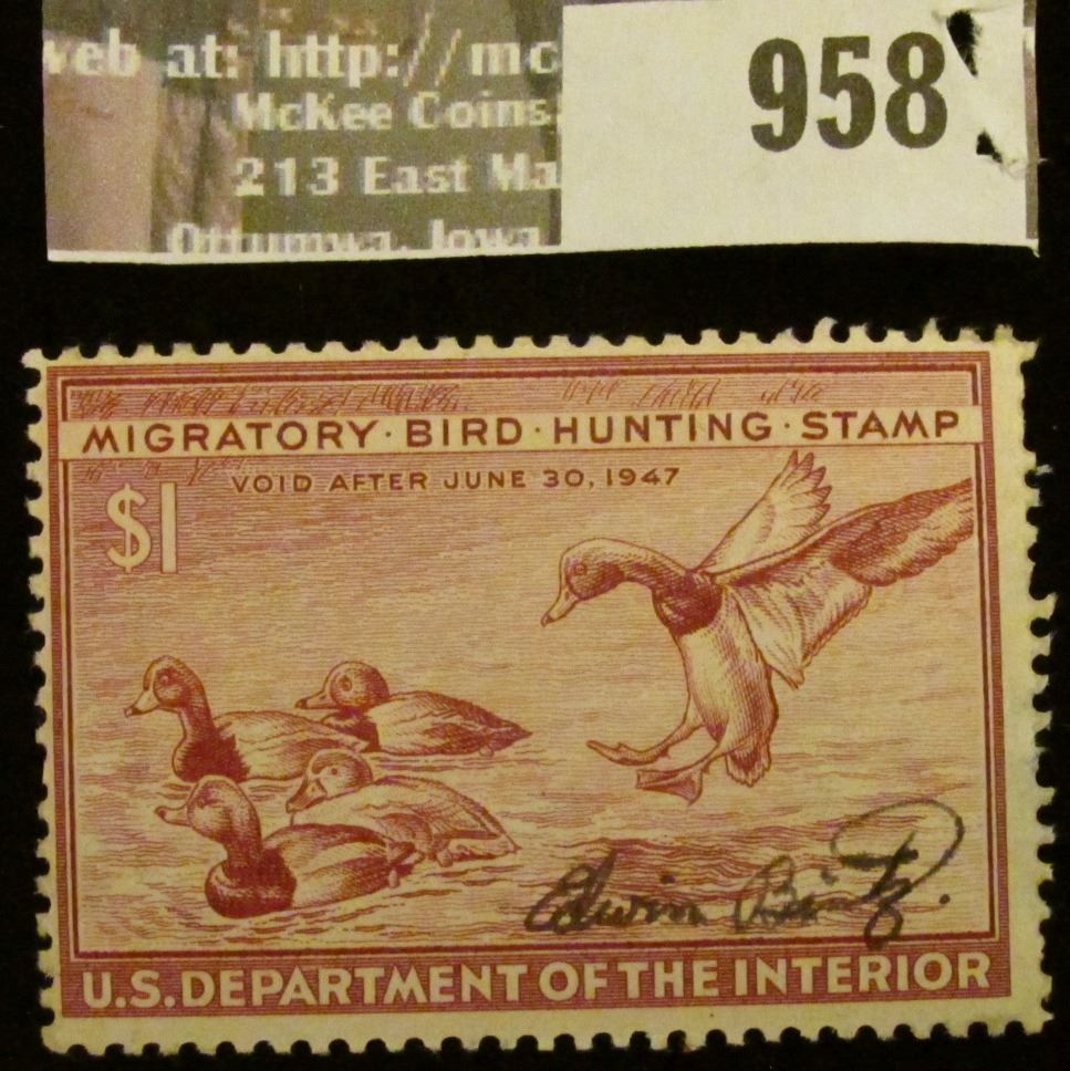 958 _ 1946 RW # 13, One Dollar U.S. Department of Agriculture Migratory Bird Hunting Stamp, small si