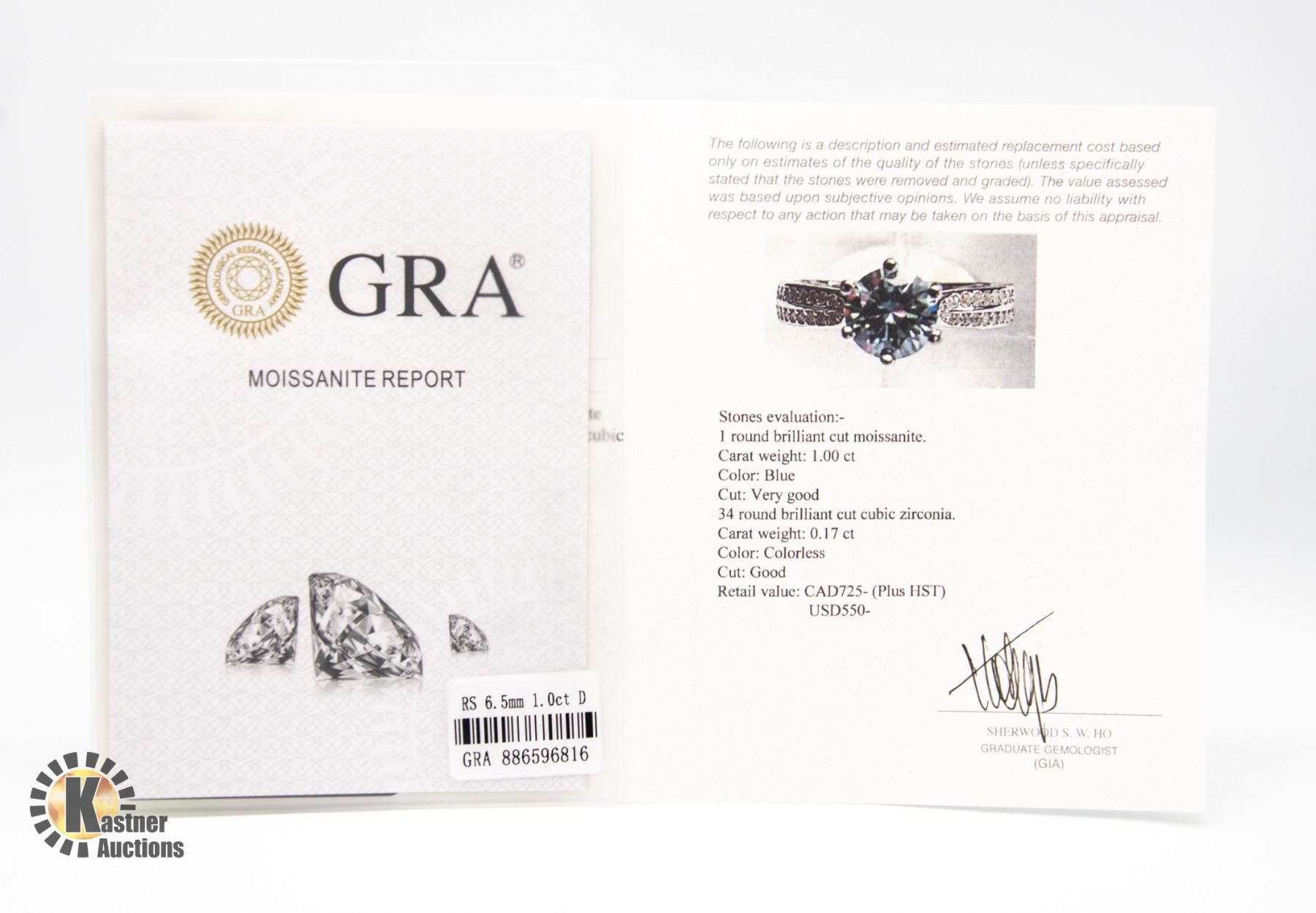 ROUND BRILLIANT CUT MOISSANITE STONE VVS BLUE COLOR SET IN CENTER OF RING IN 6 CLAW HEAD SET IN 925 SILVER RING SIZE 5 RETAIL VALUE $725.00 **ALL ITEMS MUST BE REMOVED BY 5PM SATURDAY, NOVEMBER 16TH 2024. ALL REMAINING ITEMS WILL BE SUBJECT TO A $6.00 PER DAY STORAGE CHARGE. ANY ITEMS REMAINING AFTER MONDAY, DECEMBER 2ND 2024 WILL BE CONSIDERED FORFEITED. NO REFUNDS WILL BE ISSUED FOR FORFEITED ITEMS. TO SCHEDULE A PICK UP APPOINTMENT CLICK HERE