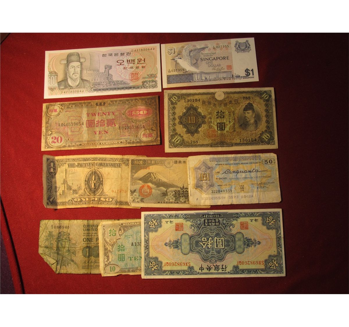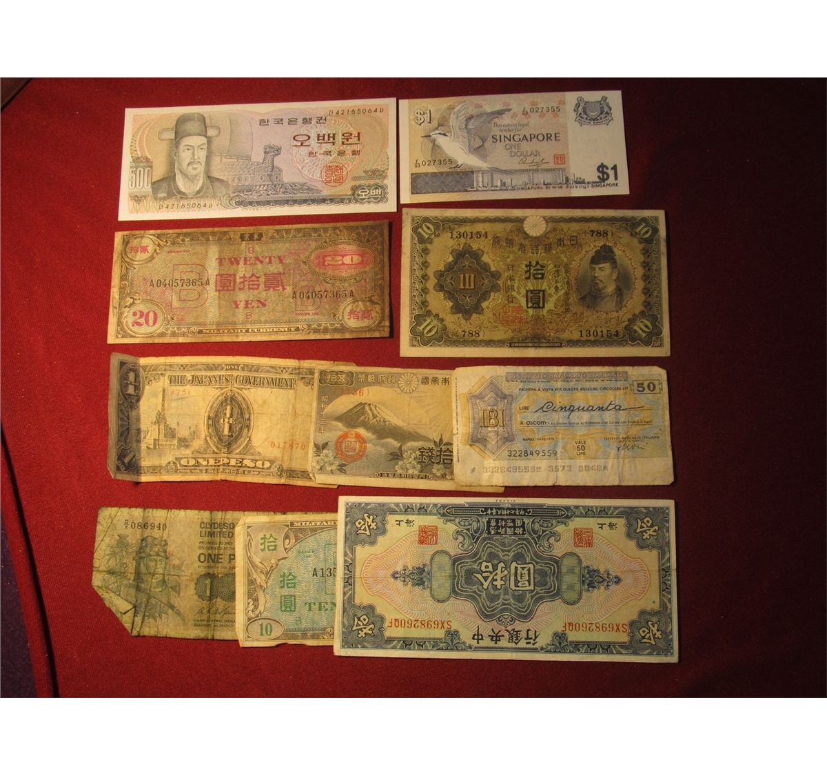 959. 10 (ten) mixed World Banknotes, WWII era to present