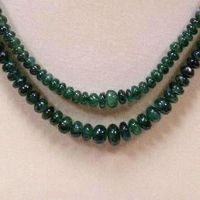 96.10 CTS 2 STRANDS OF GRADUATED EMERALD RONDELLES - LENGTH ADJUSTABLE - INCLUDED