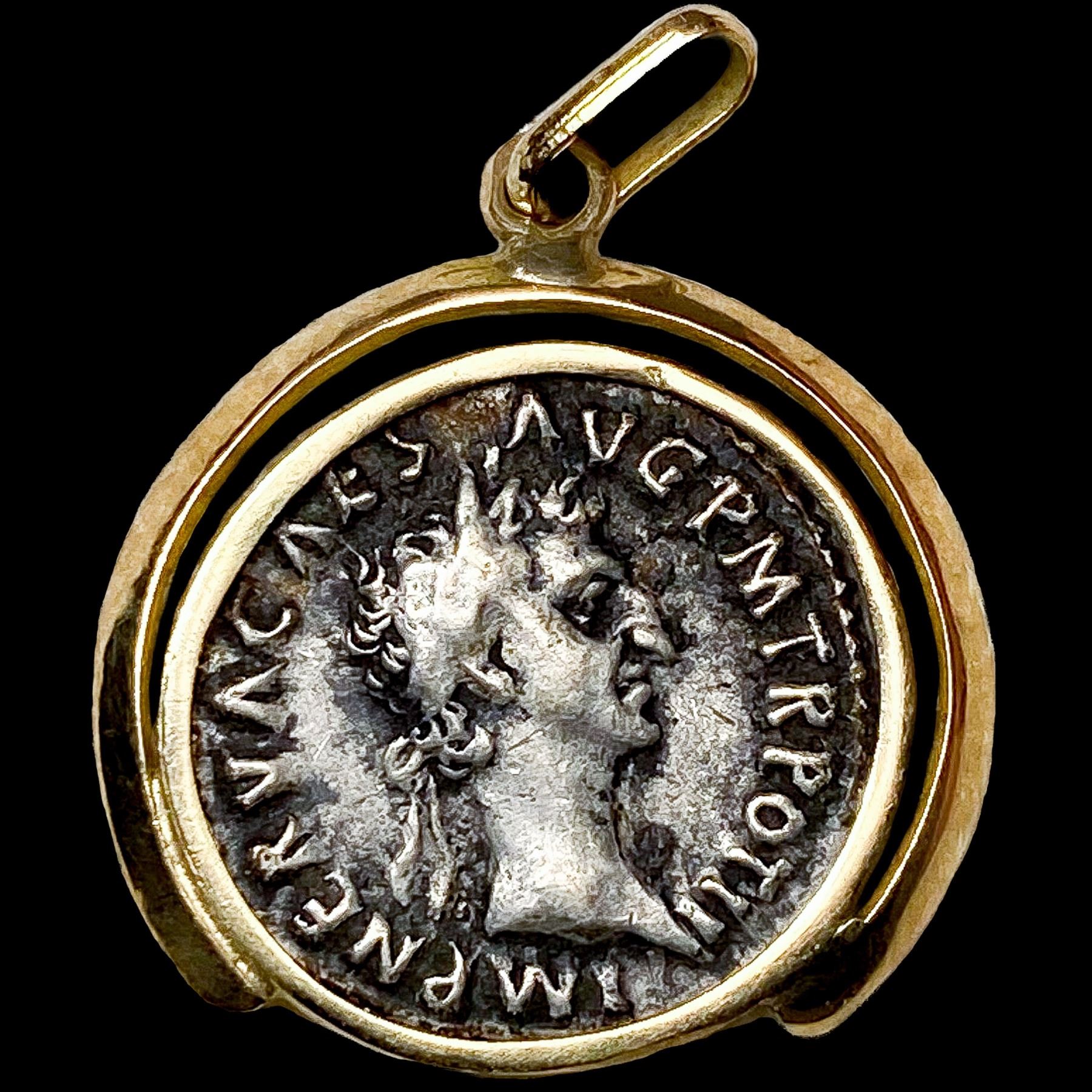 96-98 AD Rome Nerva Silver Denarius w/ Gold Bezel