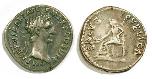 Nerva 96-98 Denarius. Reverse; Salvs seated left holding corn ears #S3035 Rica.