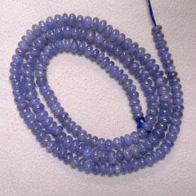 SAPPHIRE RONDELLES STRAND. IT WEIGHTS 96 CTS. EACH BEAD MEASURES 5-4 MM. LENGTH OF THE STRAND 18 INCHES INCLUDED