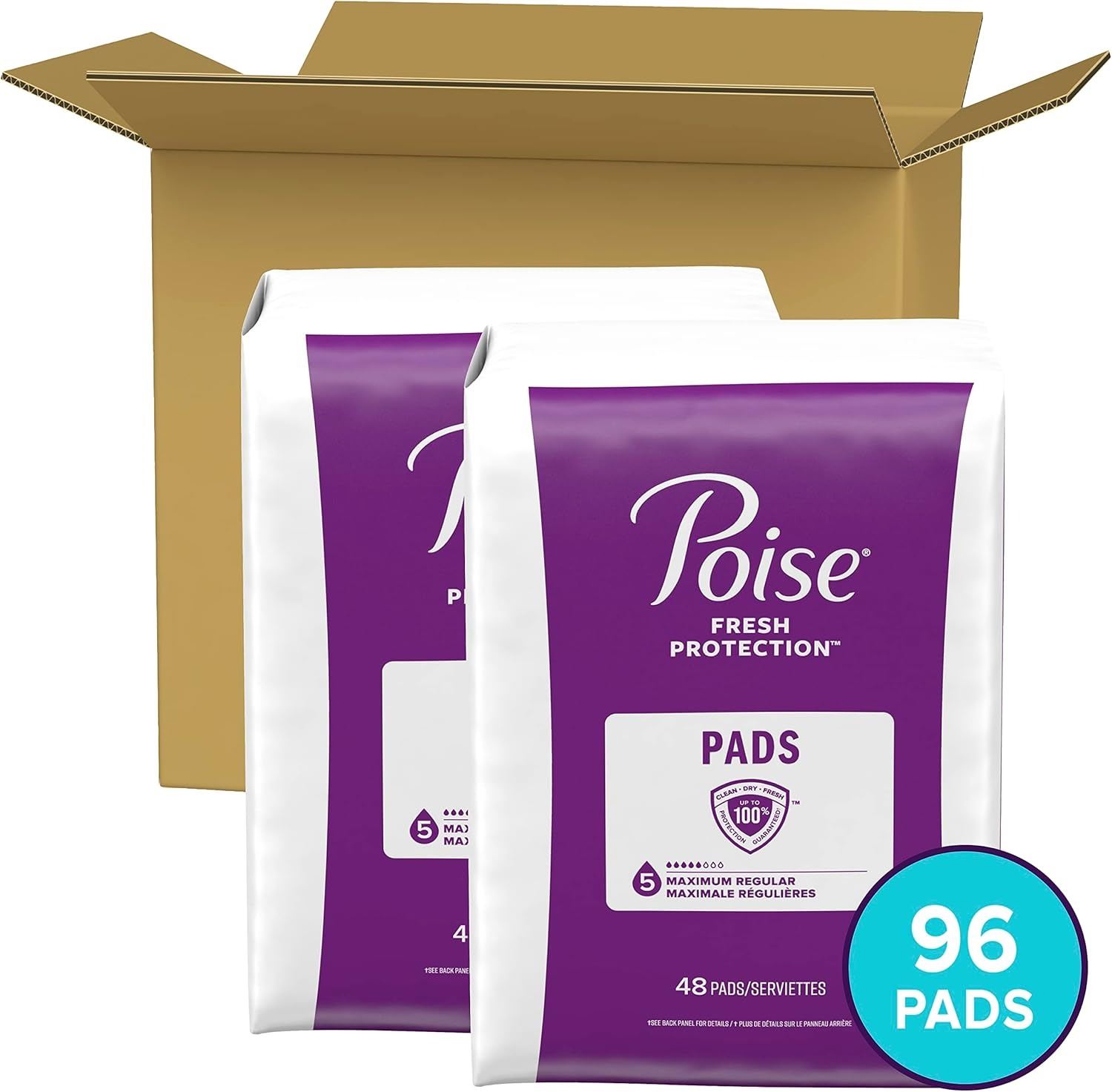96 POISE MAXIMUM REGULAR (5) PADS