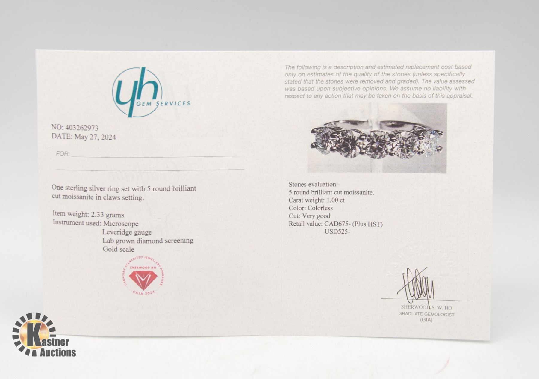 STONES VVS D COLOR THE FIVE MOISSANITE SET IN 925 SILVER RING SIZE 7 RETAIL VALUE $675.00