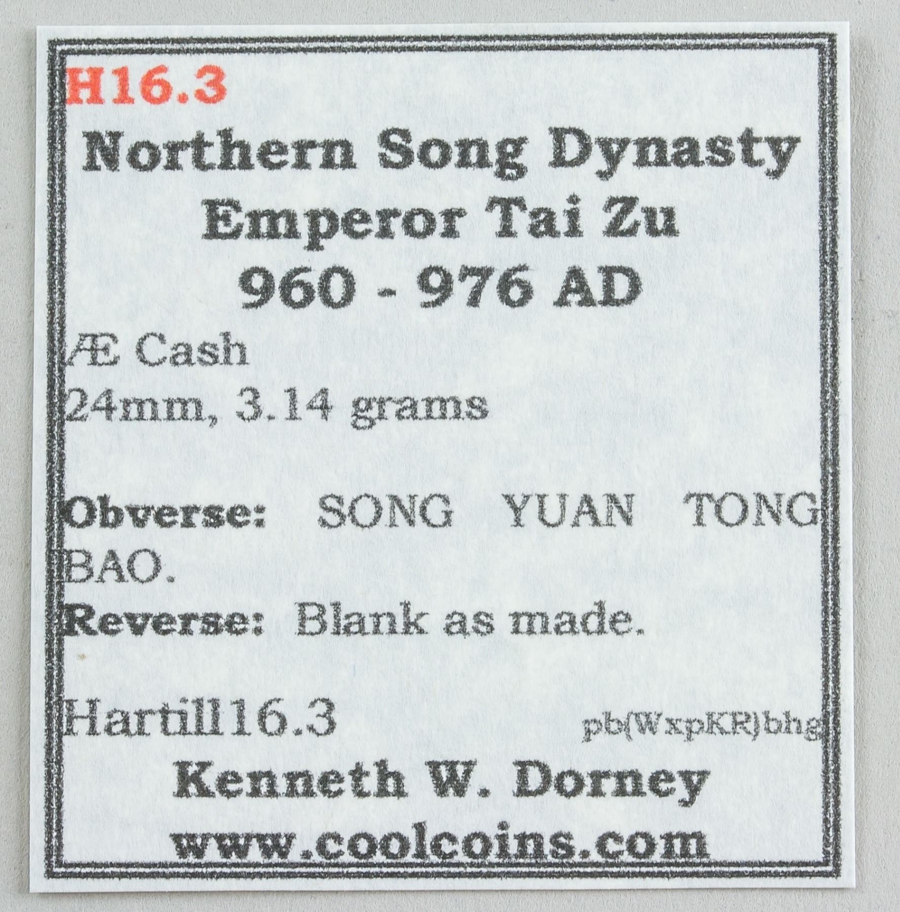 960-976 Chinese Northern Song dynasty 1 Cash bronze coin, obverse lettering Song Yuan Tong Bao, Hartill 16.3, D: 24 mm, 3.14 grams