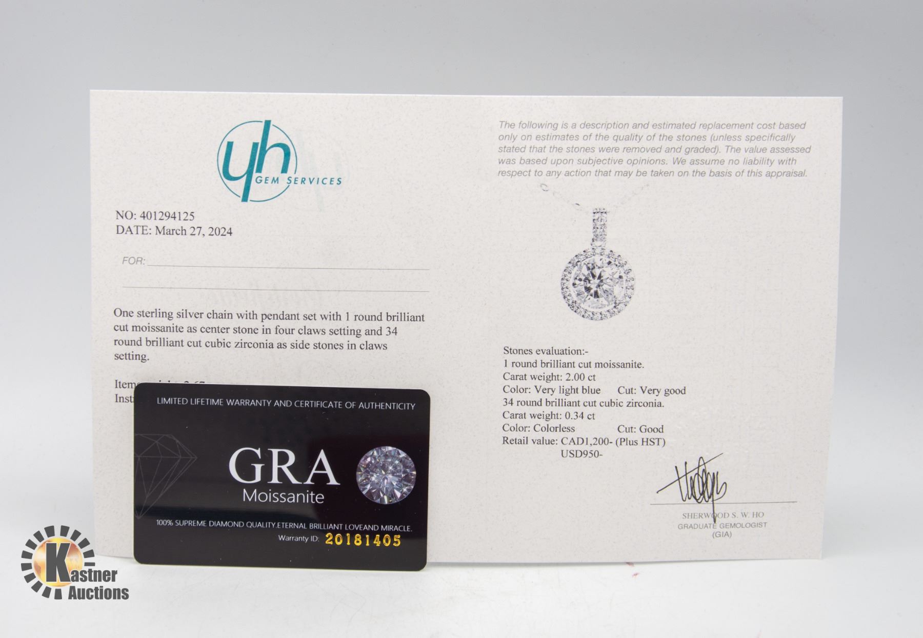 MOISSANITE VVS D COLOR SET IN CENTER OF 925 SILVER PENDANT RETAIL VALUE $1,200.00