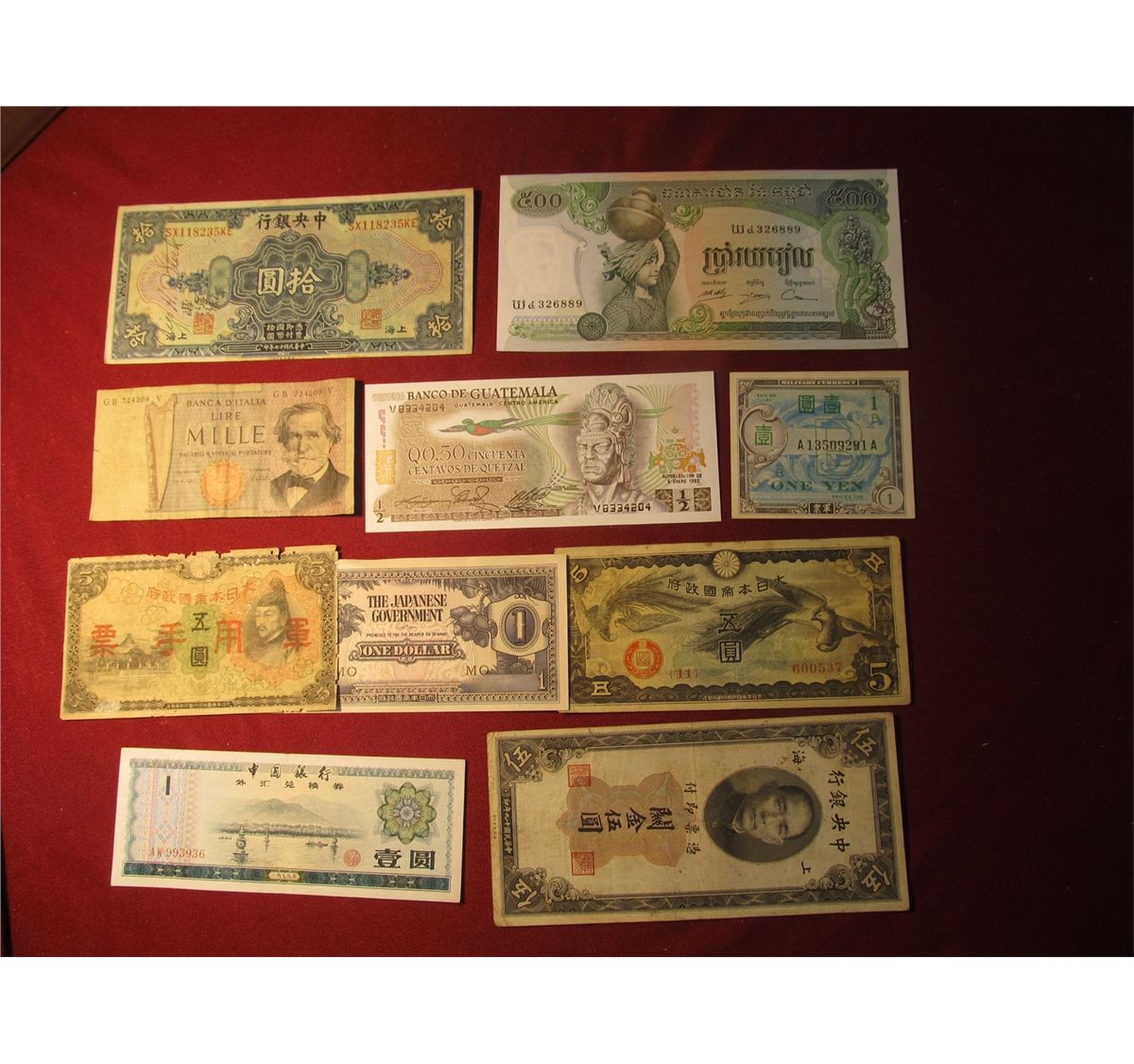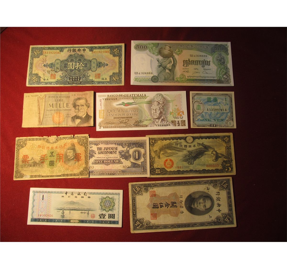 963. 10 (ten) mixed World Banknotes, WWII era to present