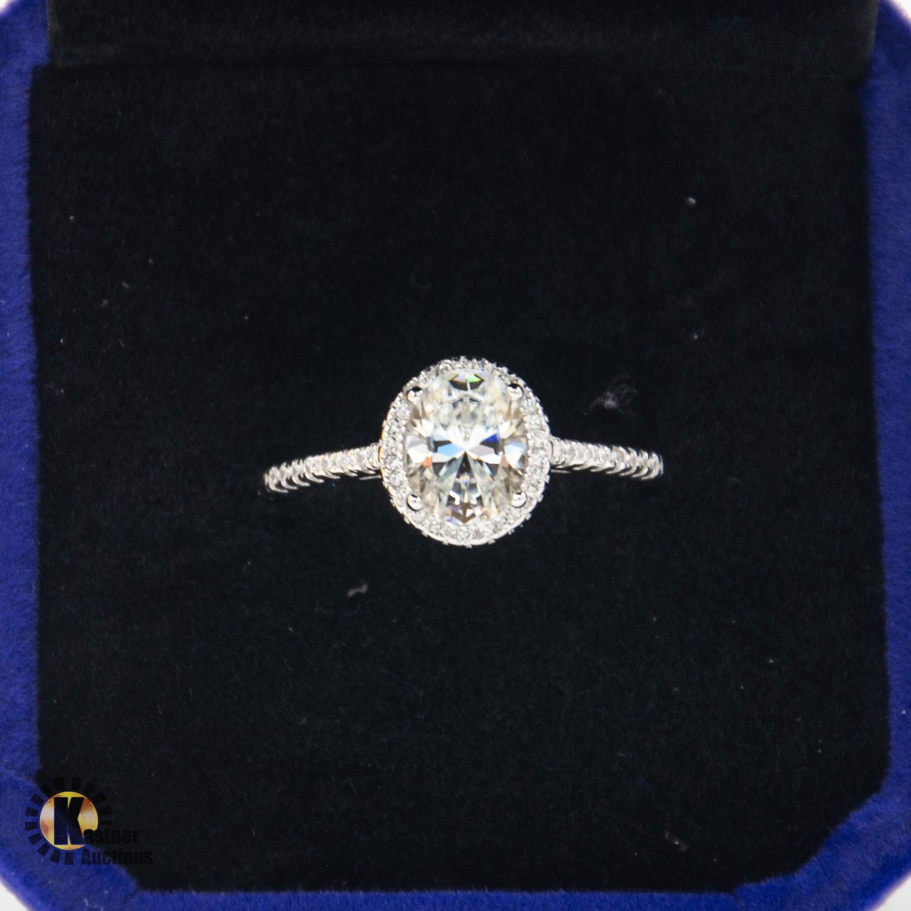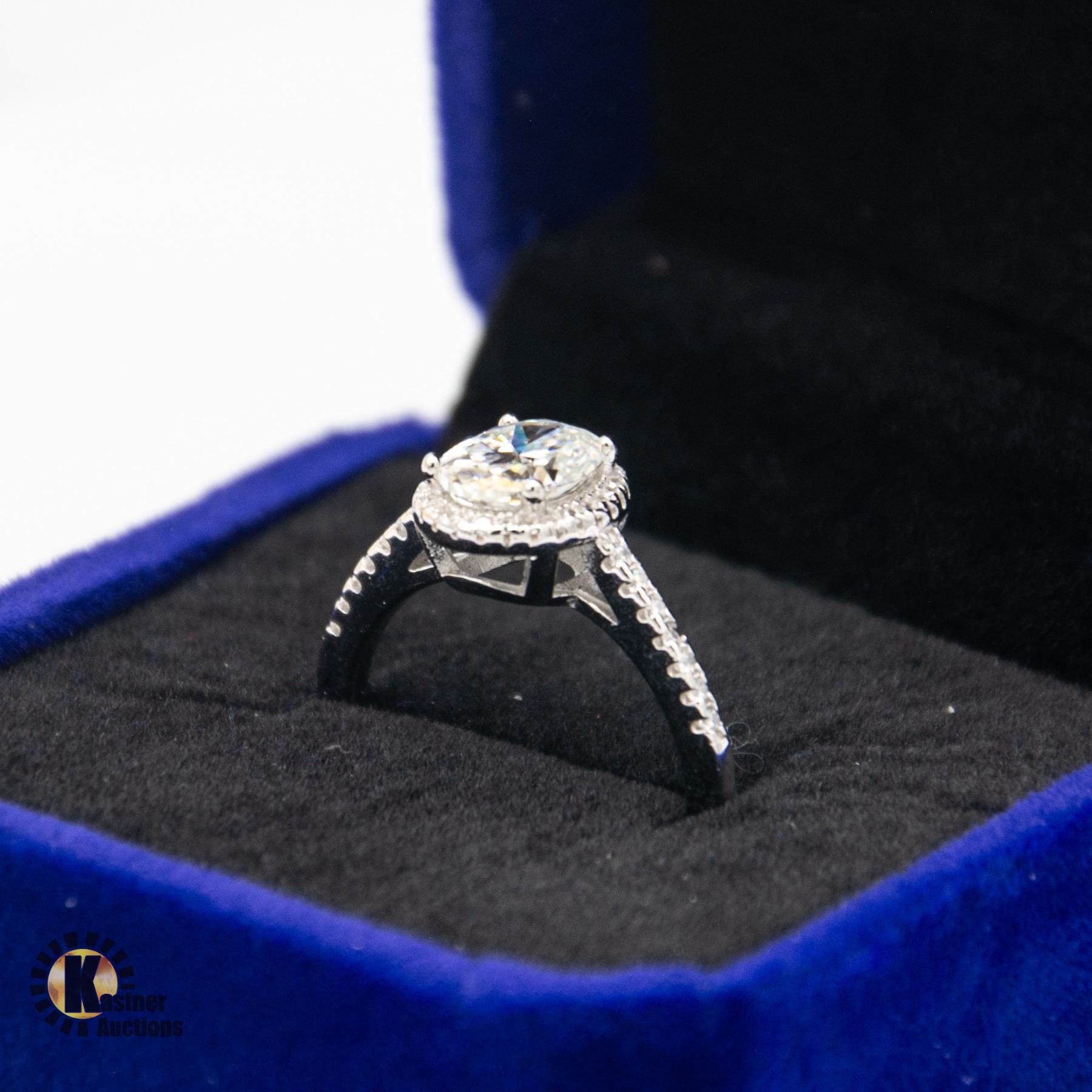 MOISSANITE STONE VVS D COLOR SET IN CENTER OF OVAL SHAPED HALO SET IN 925 SILVER RING SIZE 7 **ALL ITEMS MUST BE REMOVED BY 5PM SATURDAY, NOVEMBER 16TH 2024. ALL REMAINING ITEMS WILL BE SUBJECT TO A $6.00 PER DAY STORAGE CHARGE. ANY ITEMS REMAINING AFTER MONDAY, DECEMBER 2ND 2024 WILL BE CONSIDERED FORFEITED. NO REFUNDS WILL BE ISSUED FOR FORFEITED ITEMS. TO SCHEDULE A PICK UP APPOINTMENT CLICK HERE