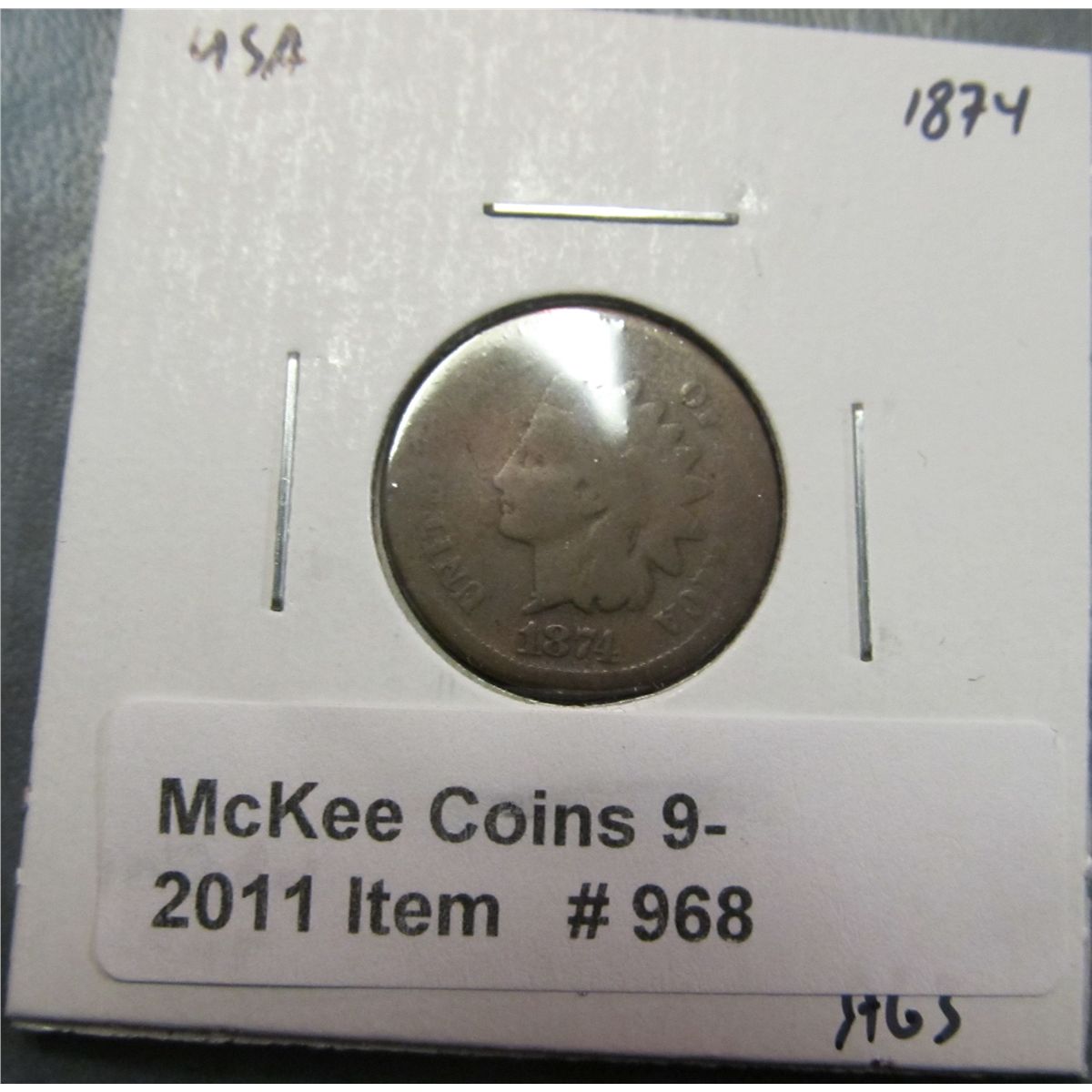 968. 1874 U.S. Indian Head Cent. AG-3.