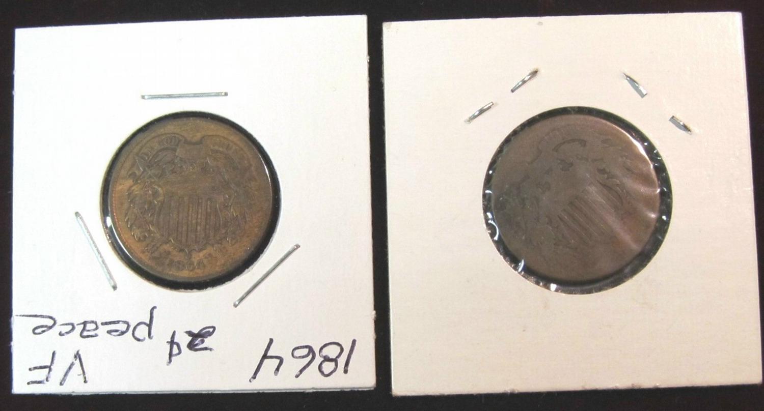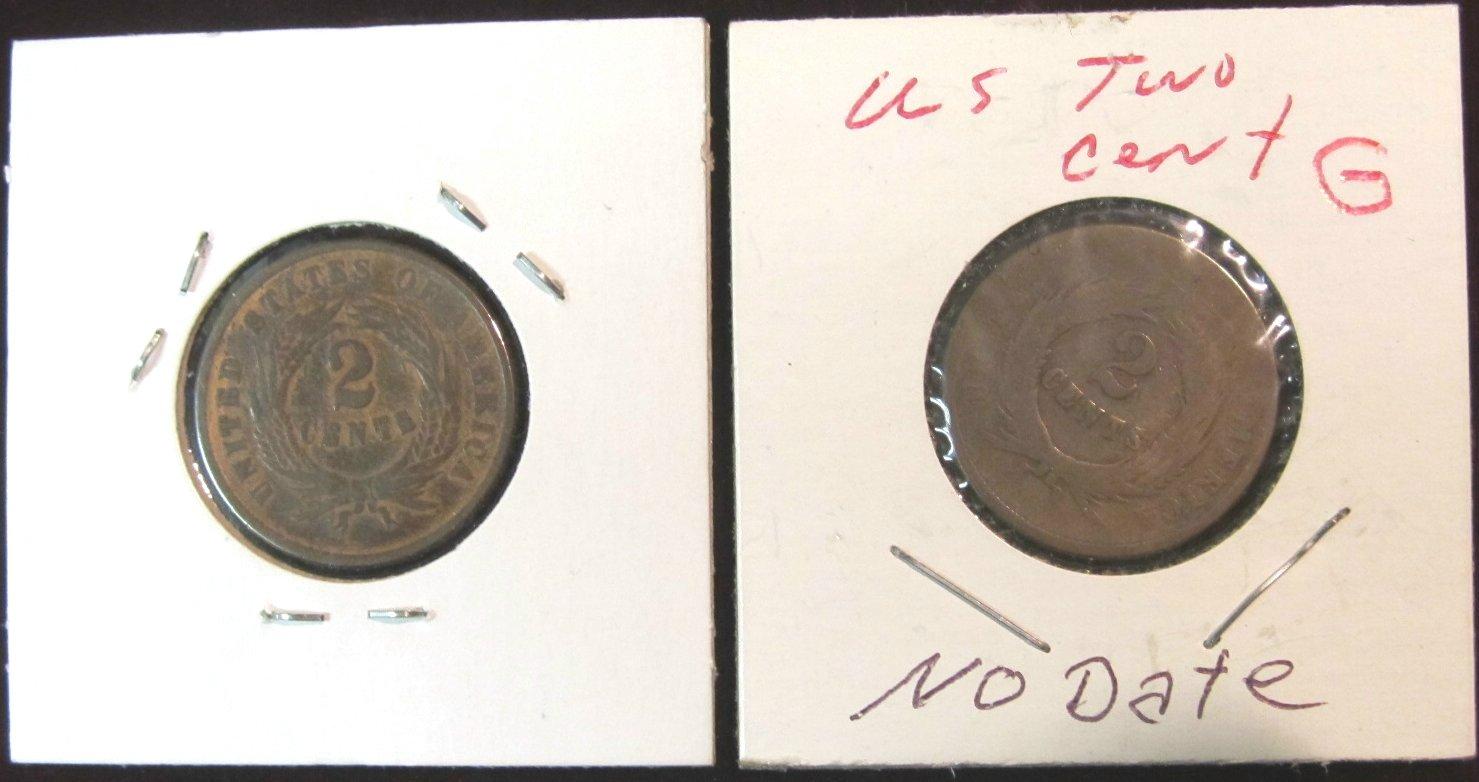 969. 1864 2-Cent Piece VG & 1- No-Date AG.