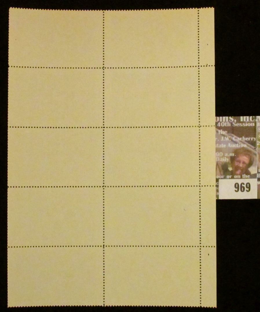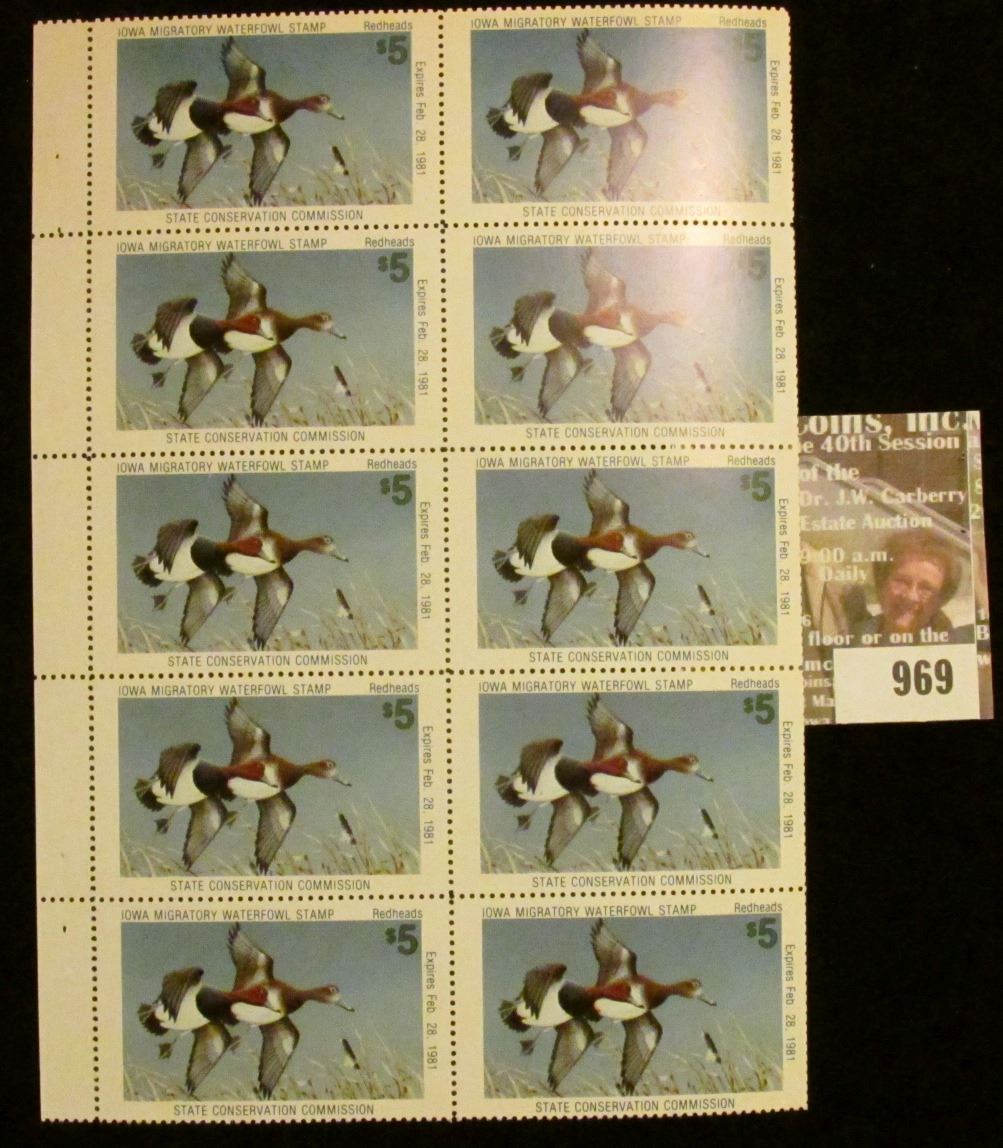 969 _ Uncut Sheet of ten 1980 $5 Migratory Waterfowl Stamps depicting Redheads. Mint, unsigned.