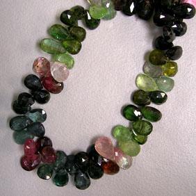 MULTICOLOR TOURMALINE TEAR DROP STRAND. IT WEIGHTS 97 CTS AND EACH BEAD MEASURES 10-7 MM APPROX. INCLUDED
