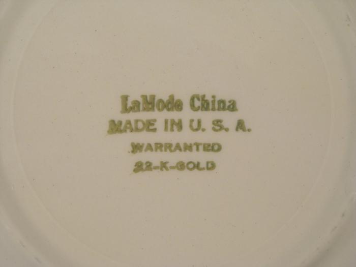 3 1/2" tea cups5 3/4" saucers 5 3/8" bowls (one cracked)8" bowls6 3/8" plates7 1/4" plates9" platesEnhance your next dinner with this vibrant Lamode service set.