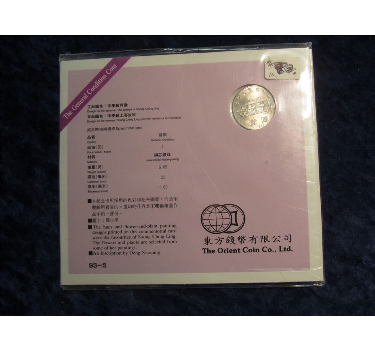 97. "The Centenary of the Birth of Soong Ching Ling Commemorative Coin" in original holder. Gem BU.