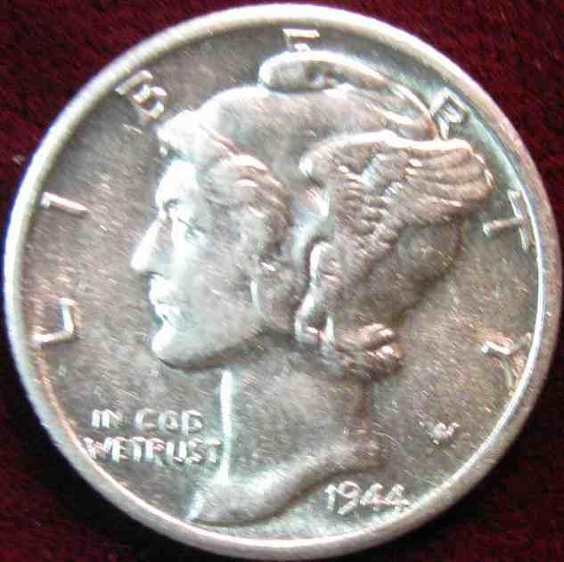 970. 1944D Mercury Dime. AU.