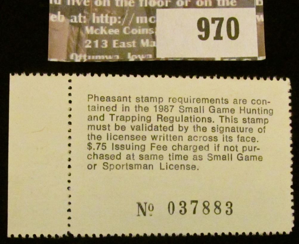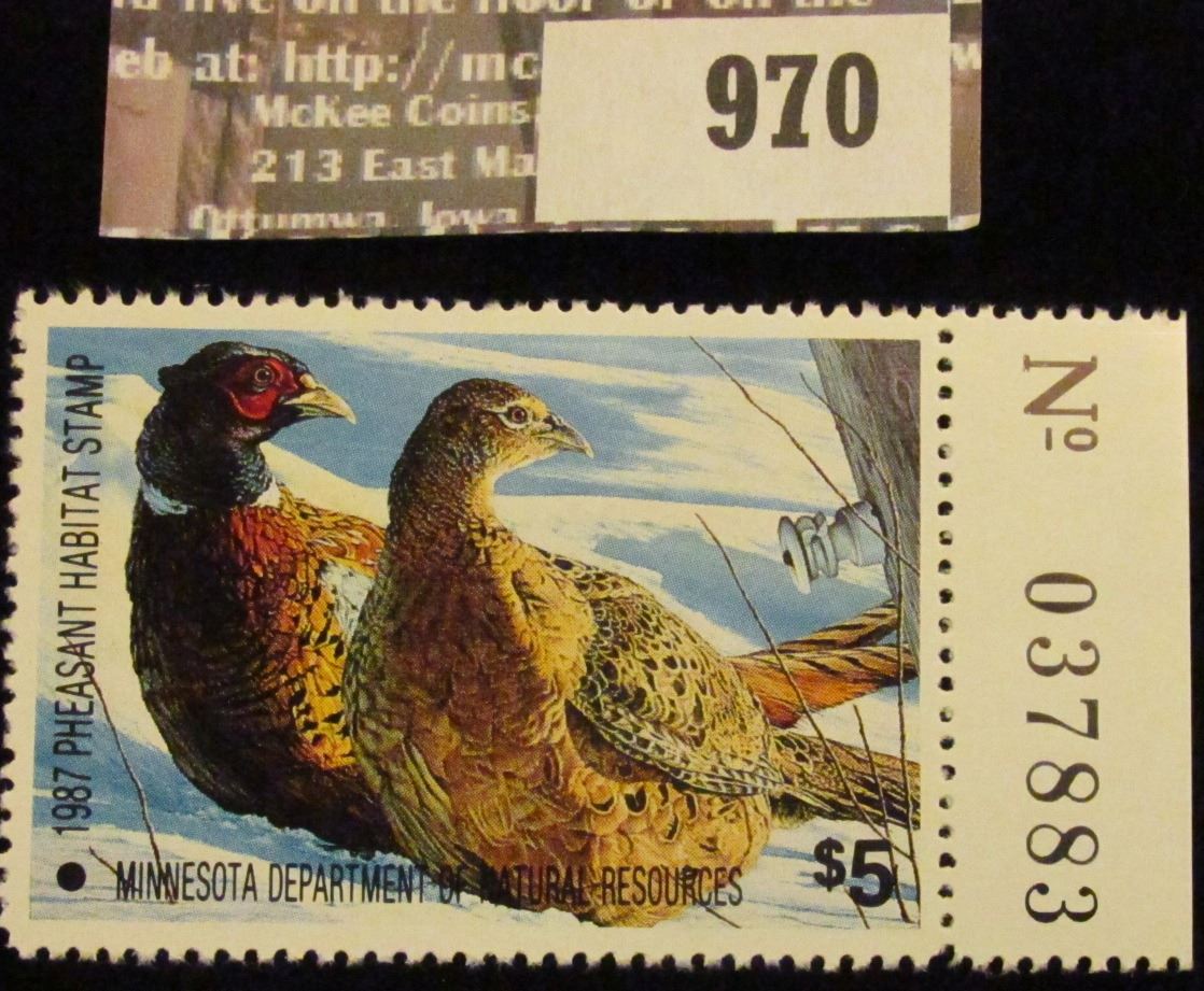 1987 Pheasant Habitat Stamp Minnesota Department of Natural Resources $5 complete with edge panel, Mint, unsigned.