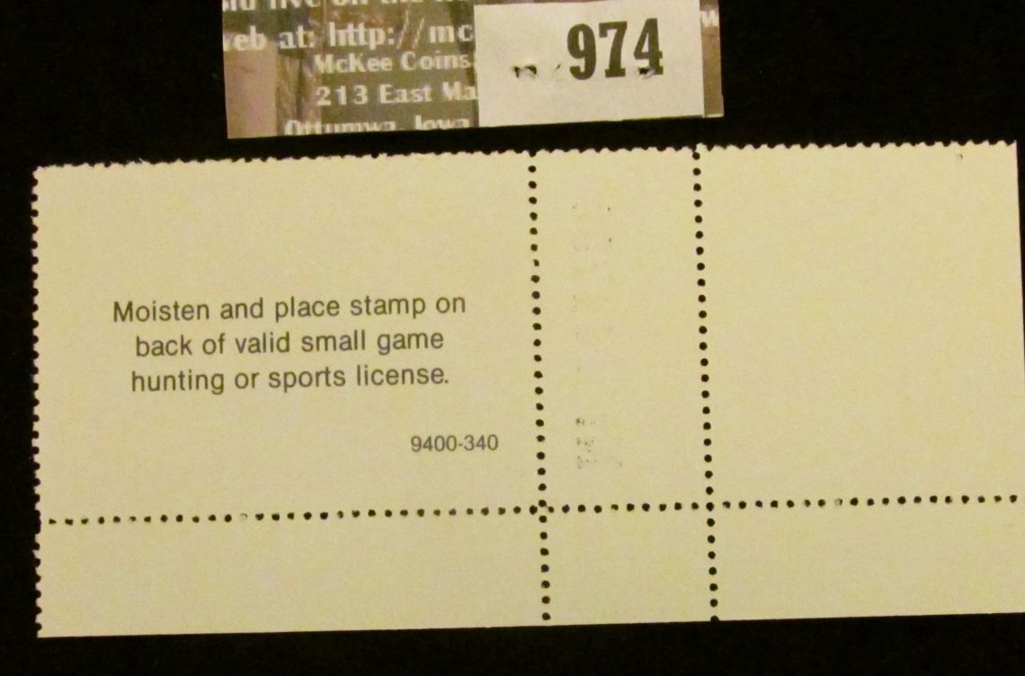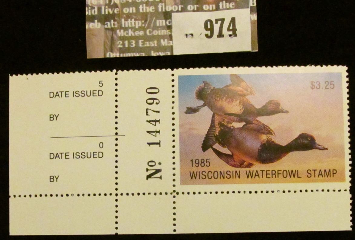 1985 Wisconsin Waterfowl Stamp $3.25. Unsigned with corner panel edge.