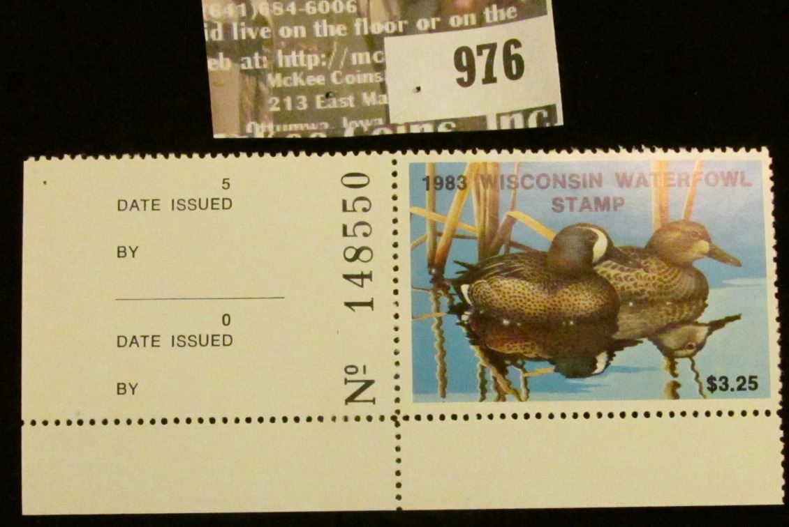 1983 Wisconsin Waterfowl Stamp $3.25. Unsigned with panel edge.