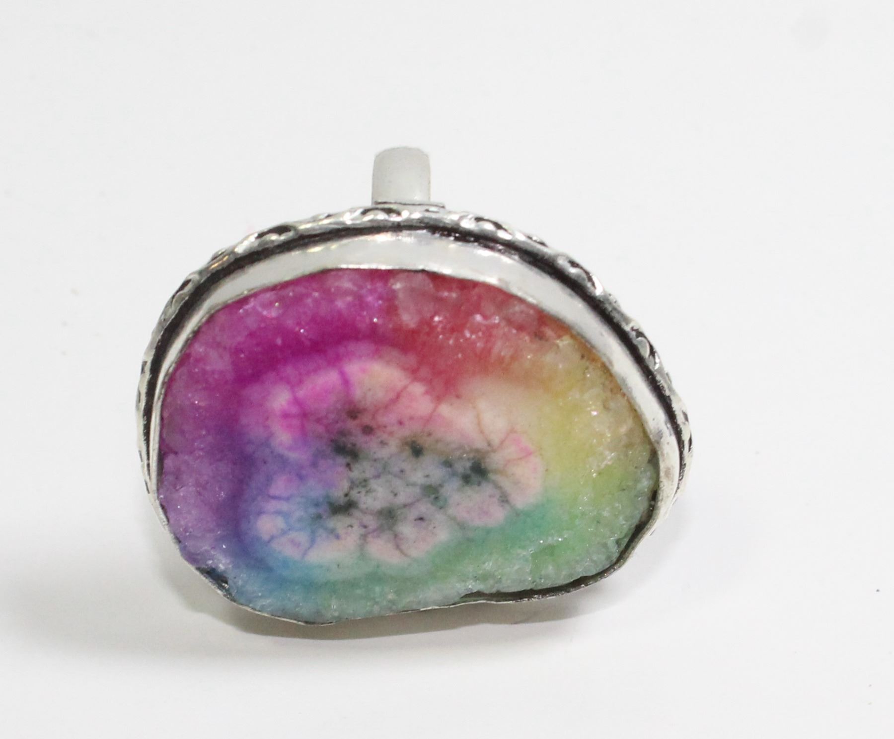 #98-NATURAL RAINBOW SOLAR QUARTZ RING SIZE 8