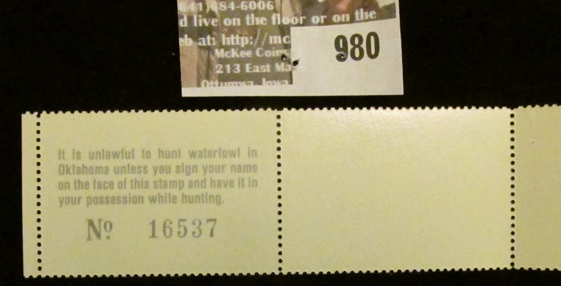 980 _ 1984-85 Oklahoma Department of Wildlife Conservation Waterfowl Hunting $4 Stamp. Mint, unsign