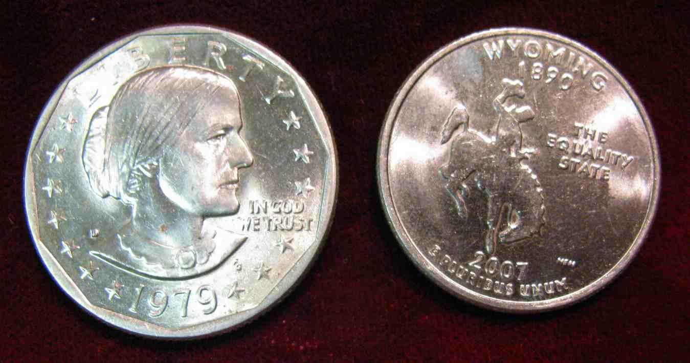 980. 2007D Wyoming Quarter & 1979D SBA Dollar. BU.