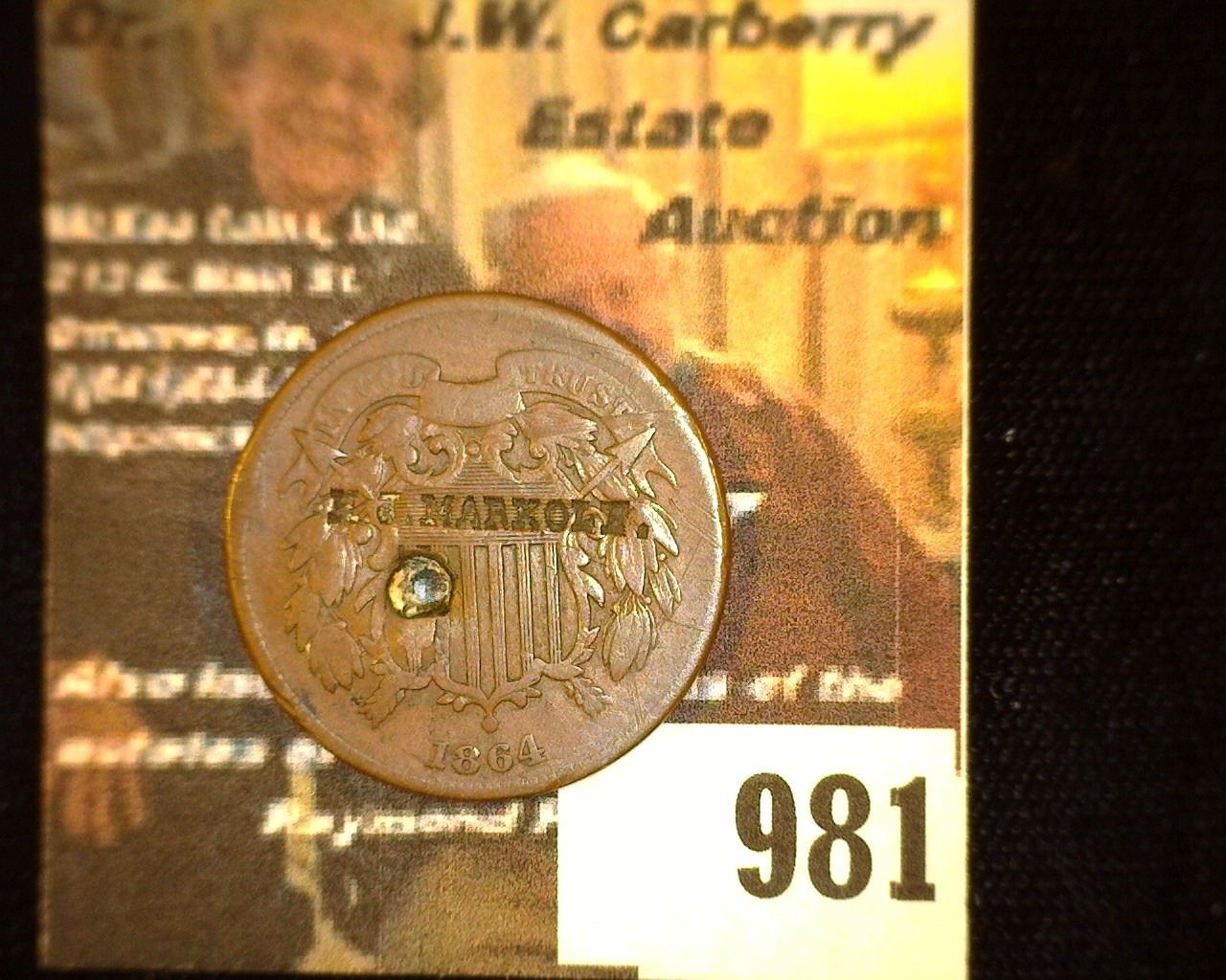 981.1864 U.S. Two Cent piece, holed, obv. c/s of "H.J.Markolf*".