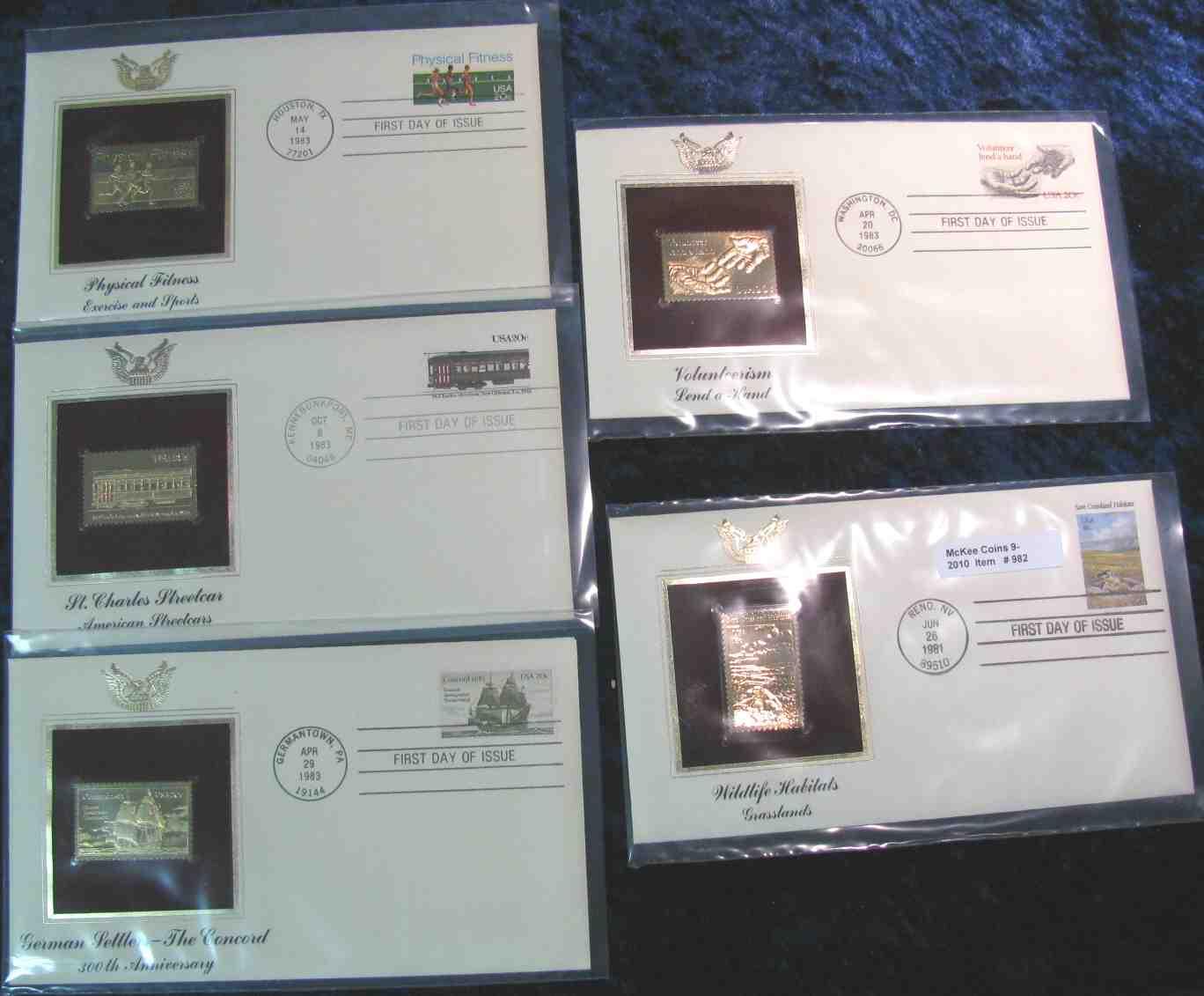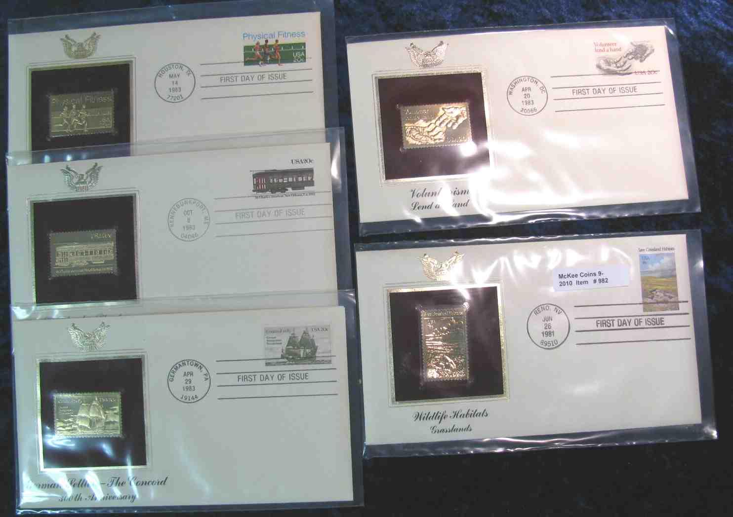 982. (5) 22K Gold Stamps First Day Covers 1981-1983