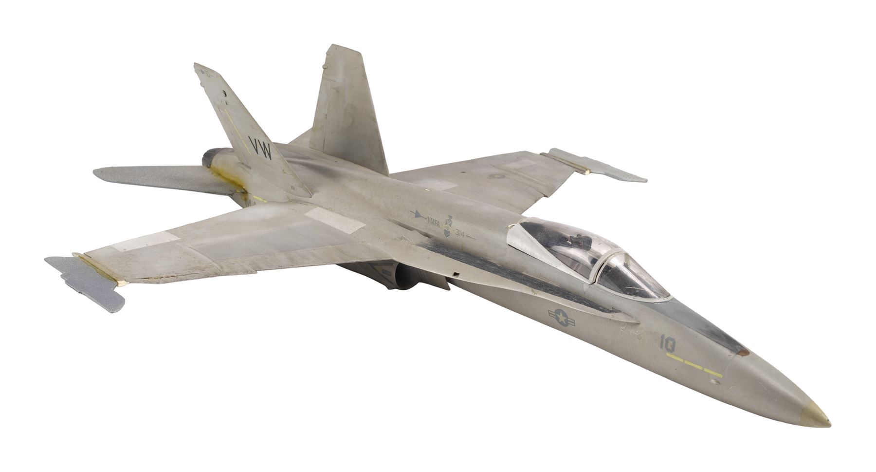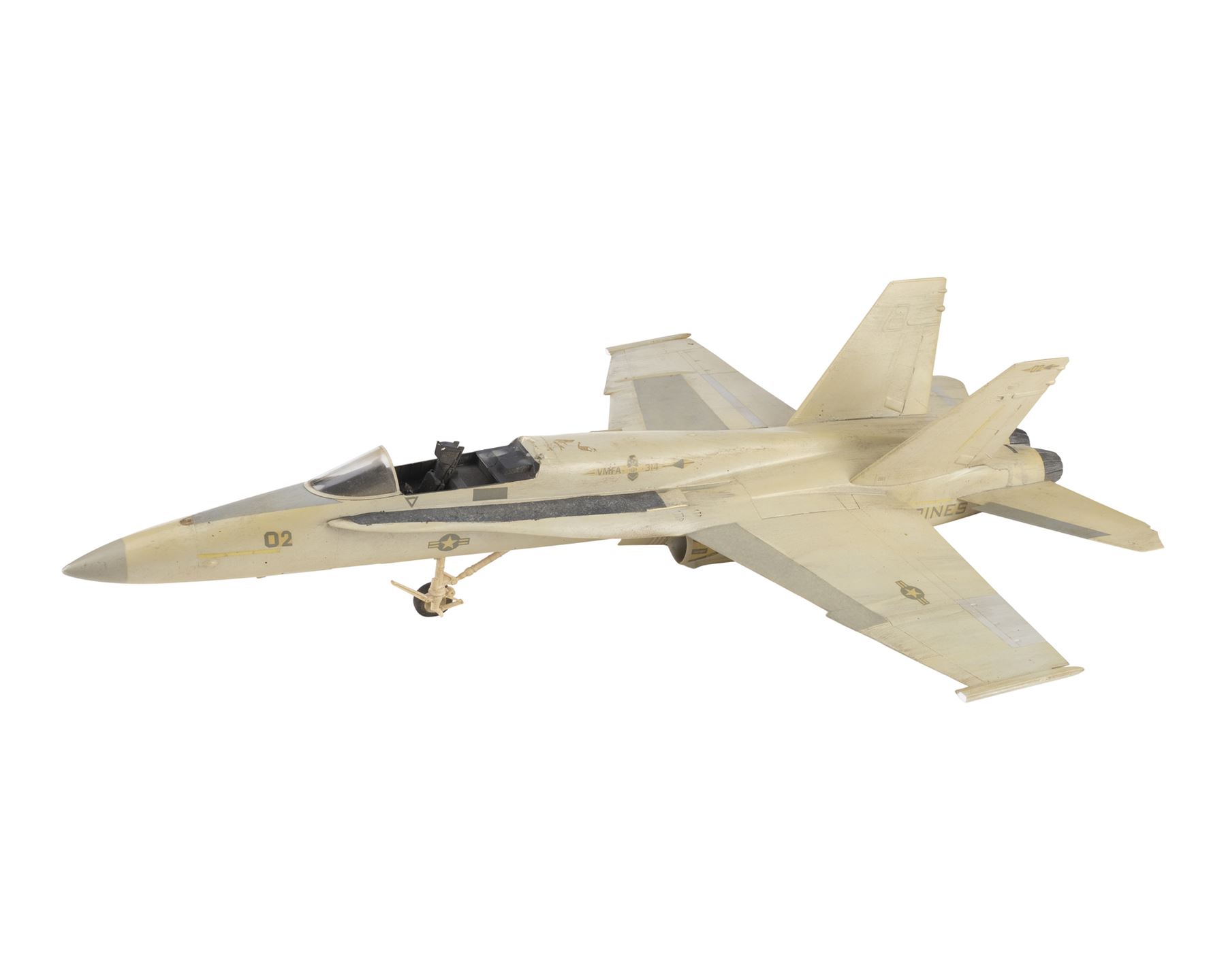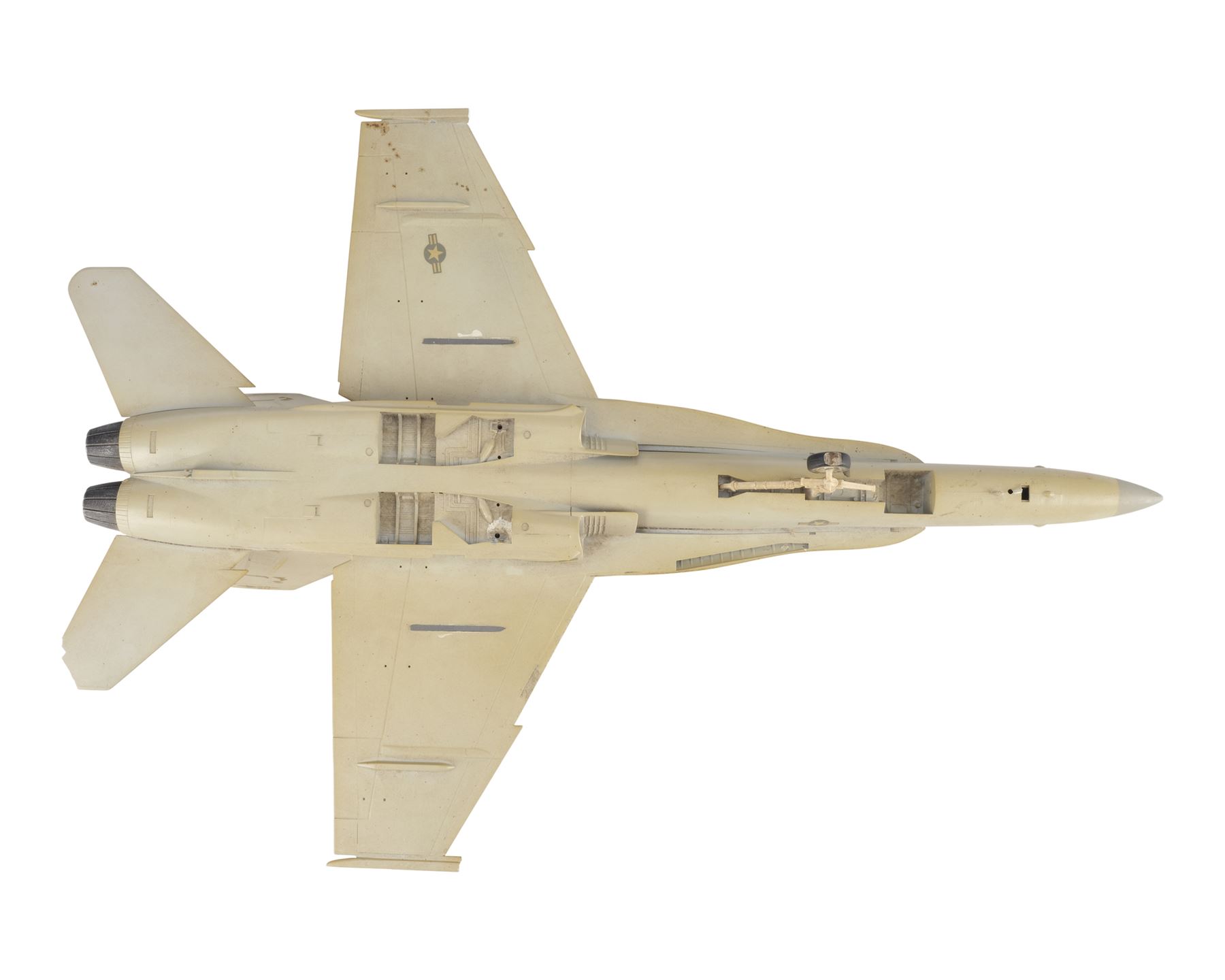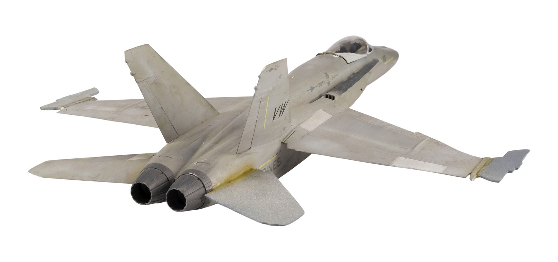 INDEPENDENCE DAY (1996) - Pair of F/A-18 Fighter Jet Model Miniatures - A pair of F/A-18 fighter jet model miniatures from Roland Emmerich's Independence Day. Captain Steven Hiller (Will Smith) and his squadron flew F/A-18s combatting alien invaders, and President Thomas Whitmore (Bill Pullman) piloted one in the July 4th counterattack.