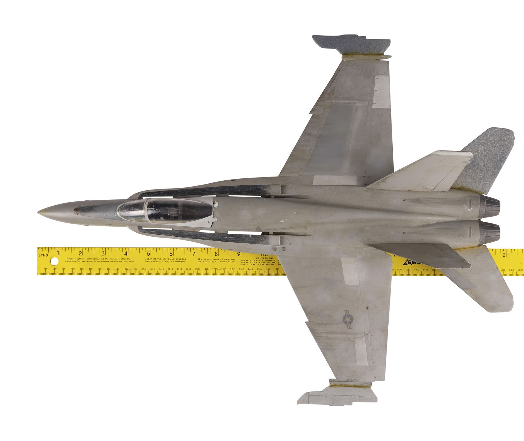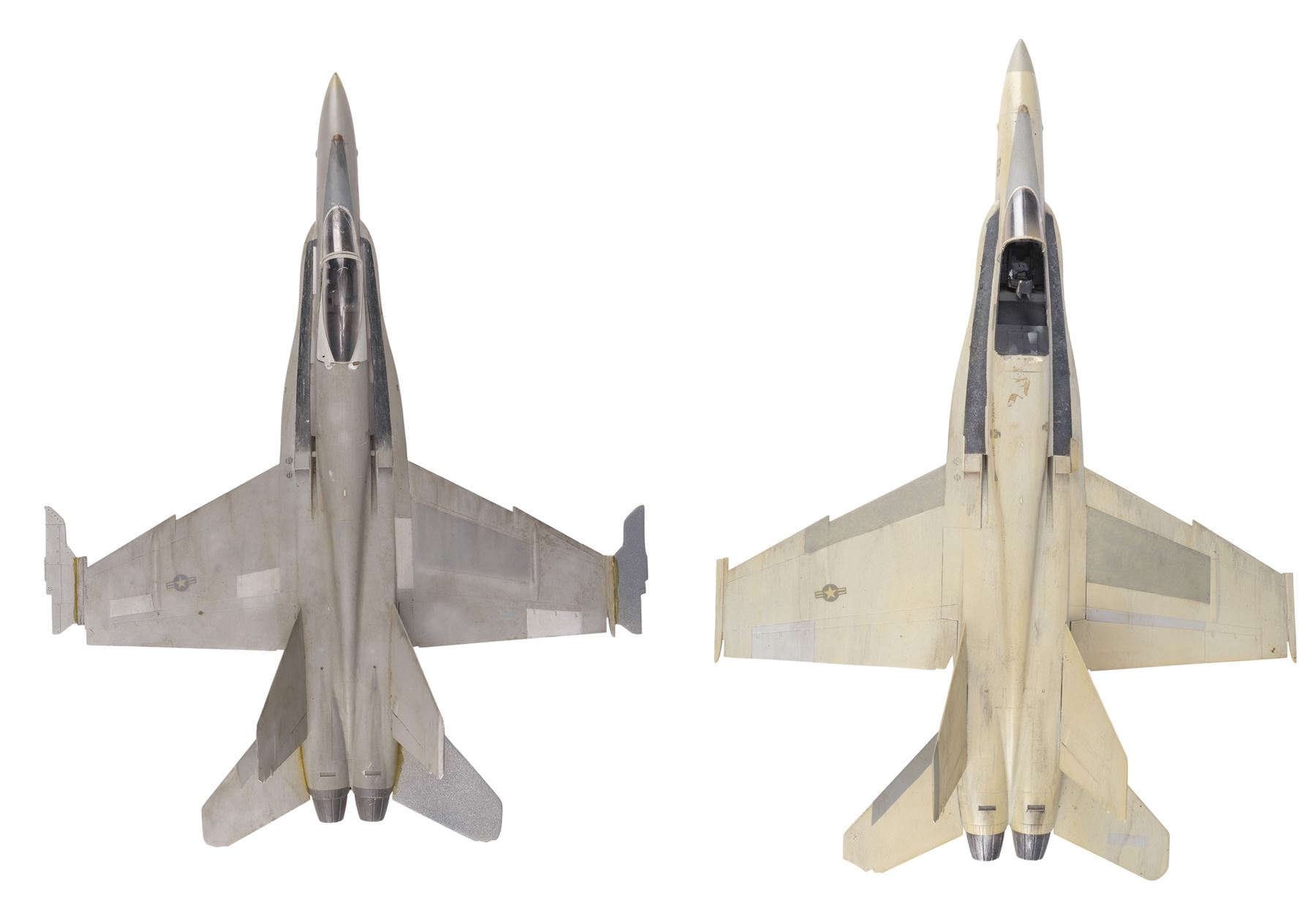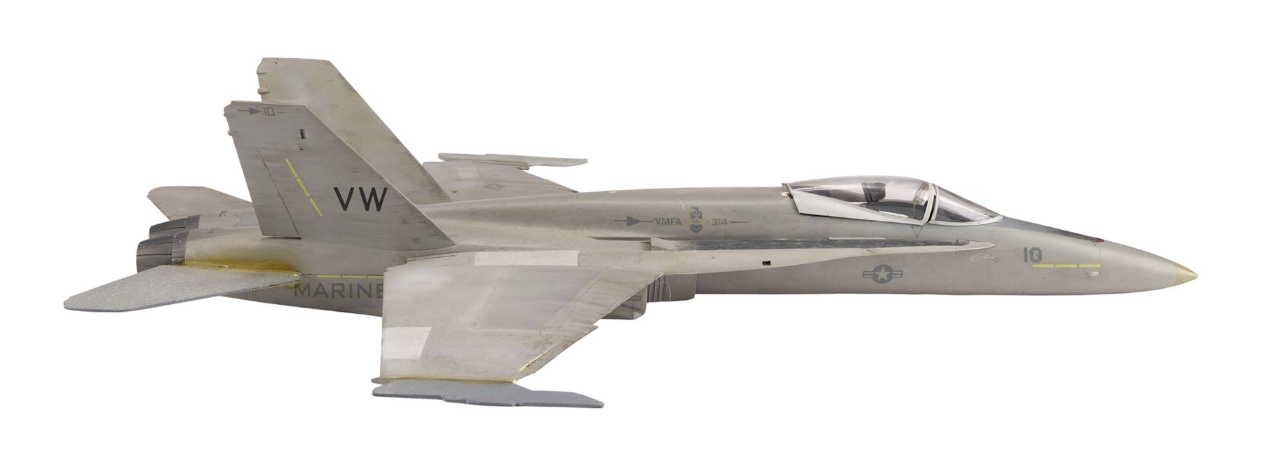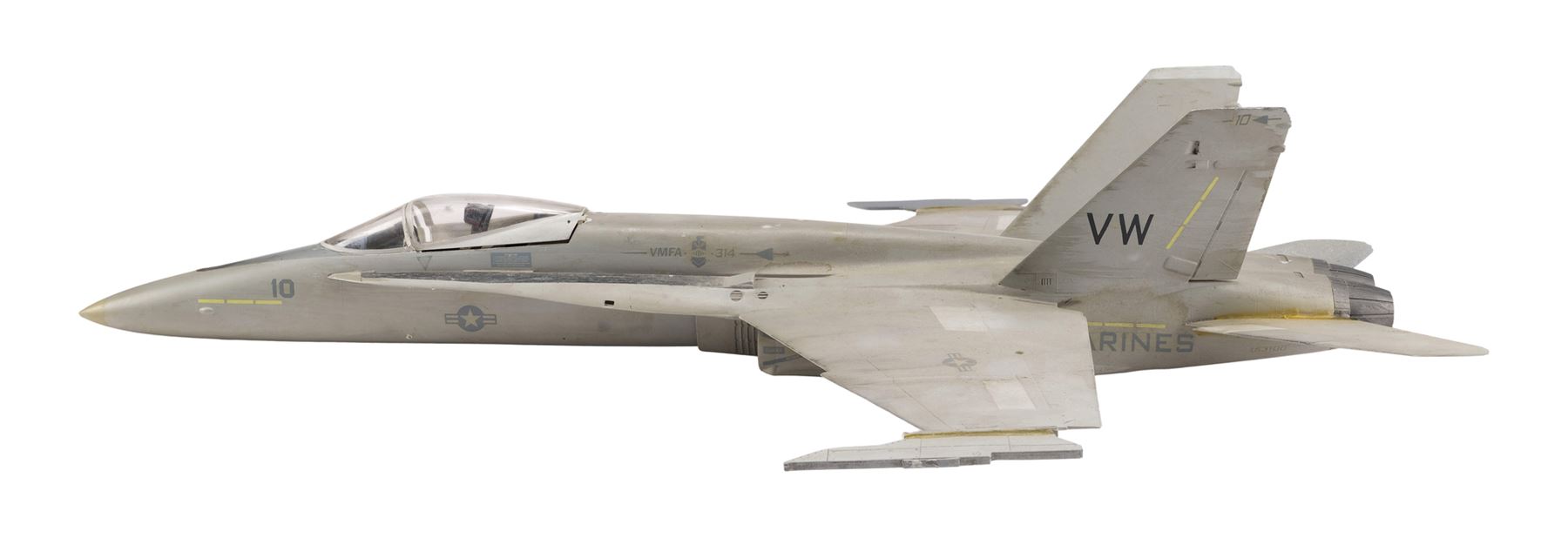 INDEPENDENCE DAY (1996) - Pair of F/A-18 Fighter Jet Model Miniatures - A pair of F/A-18 fighter jet model miniatures from Roland Emmerich's Independence Day. Captain Steven Hiller (Will Smith) and his squadron flew F/A-18s combatting alien invaders, and President Thomas Whitmore (Bill Pullman) piloted one in the July 4th counterattack.