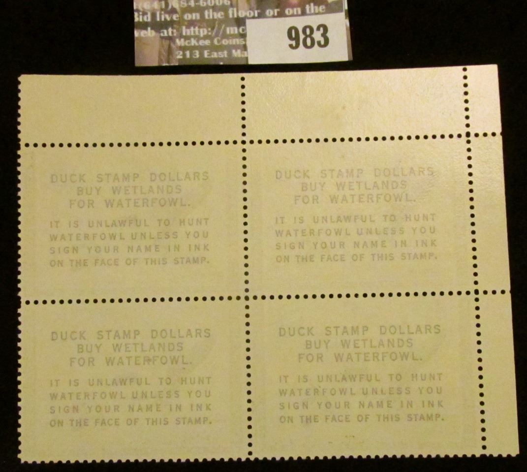 983 _ 1963 U/L Plate block of 4 $3 U.S. Departement of the Interior Migratory Bird Hunting Stamps, n