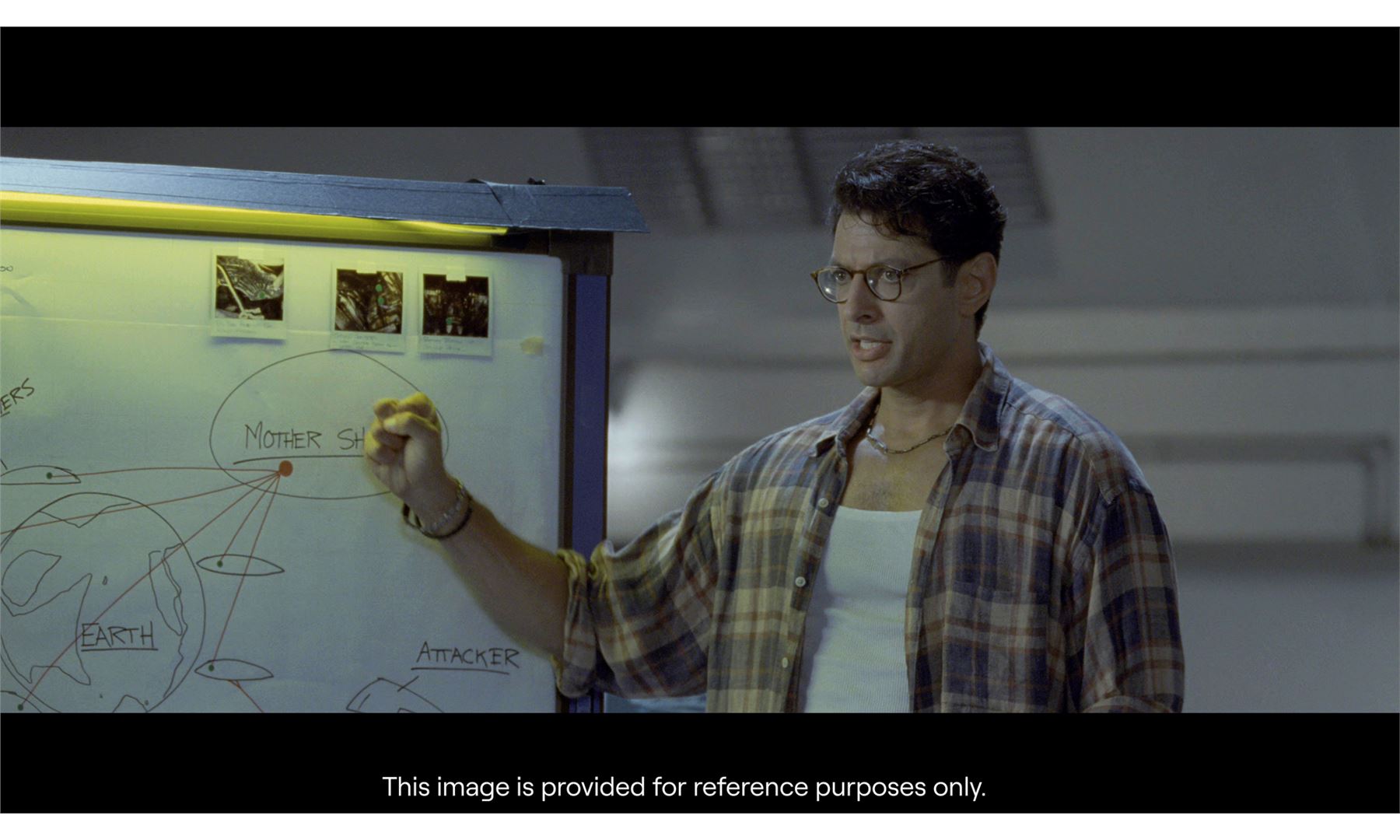 INDEPENDENCE DAY (1996) - David Levinson's (Jeff Goldblum) Shirt - David Levinson's (Jeff Goldblum) shirt from Roland Emmerich's Independence Day. David wore his shirt as he played against his father Julius Levinson (Judd Hirsch) in a game of chess in Central Park. David later wore his shirt when he decoded the alien countdown to the end of the world and as he went to the White House to explain to President Thomas J. Whitmore (Bill Pullman).