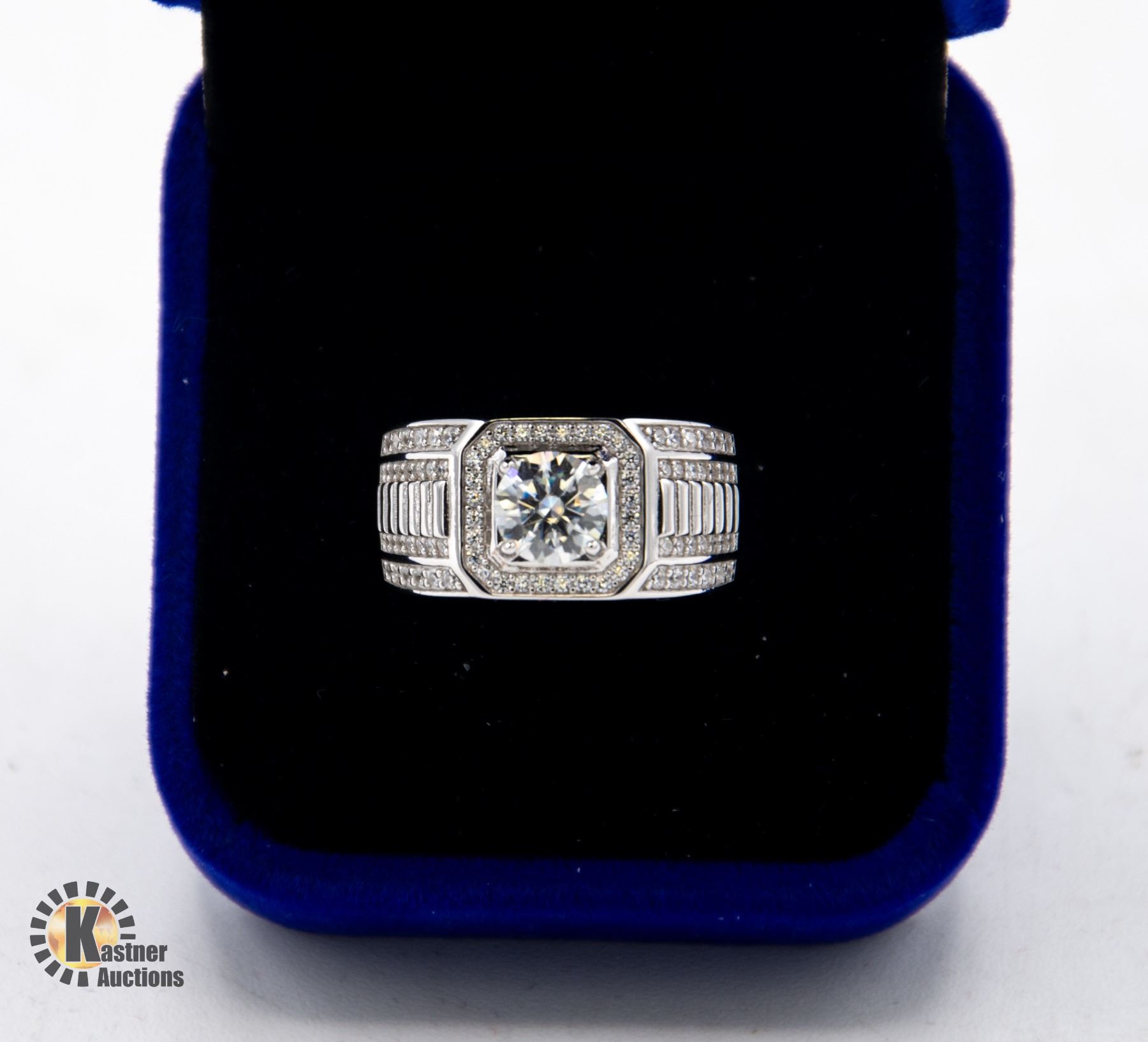 MOISSANITE STONE VVS D COLOR SET IN CENTER OF 925 SILVER RING SIZE 8.5 RETAIL VALUE $1,200.00