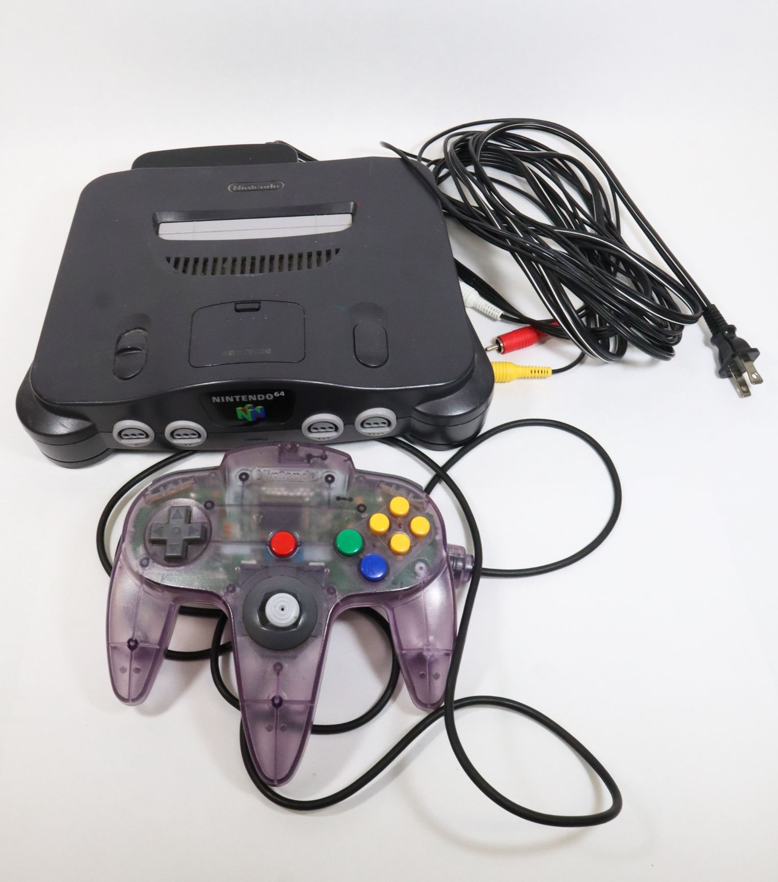 TESTED & WORKING! N64 NINTENDO 64 SYSTEM WITH ALL CORDS ACCESSORIES WORKING PURPLE CONTROLLER