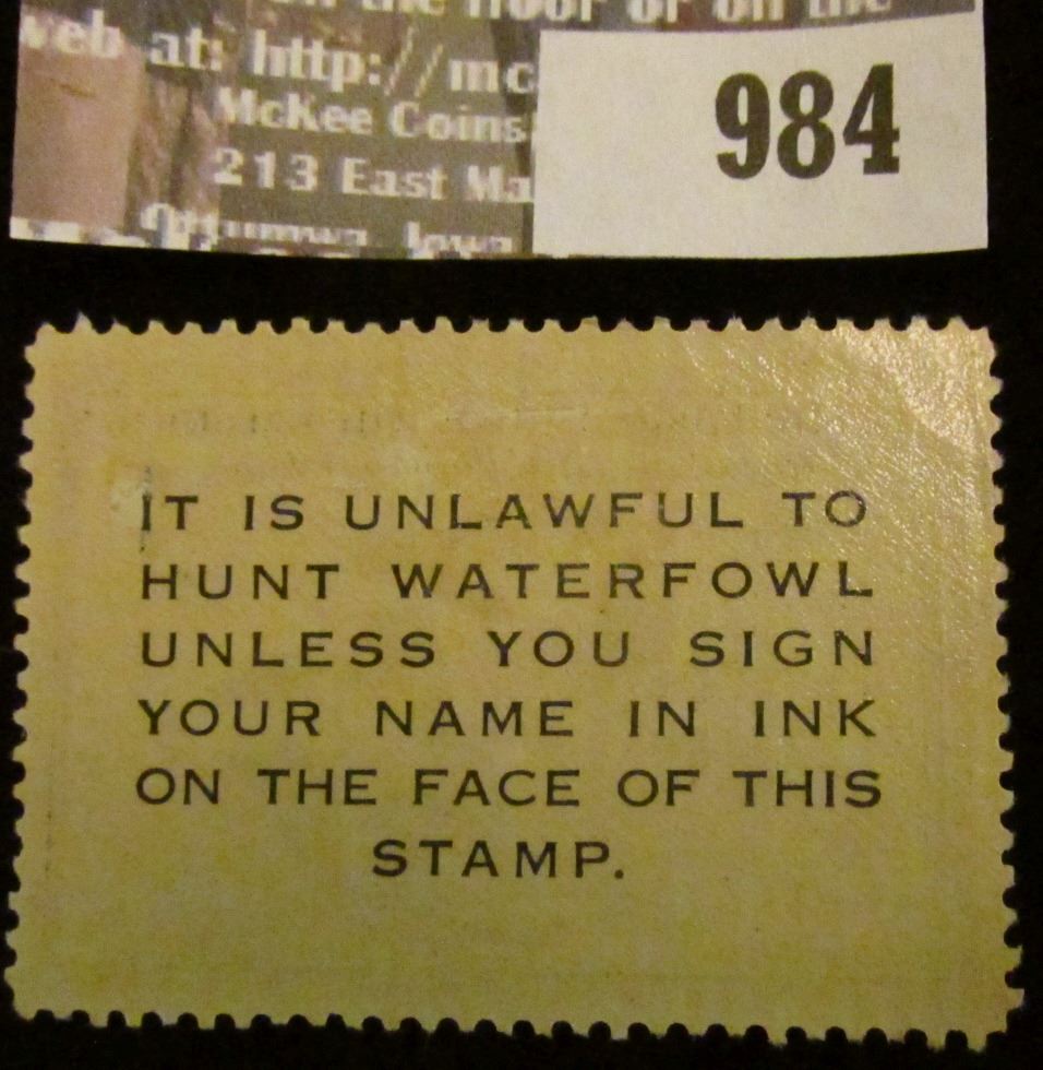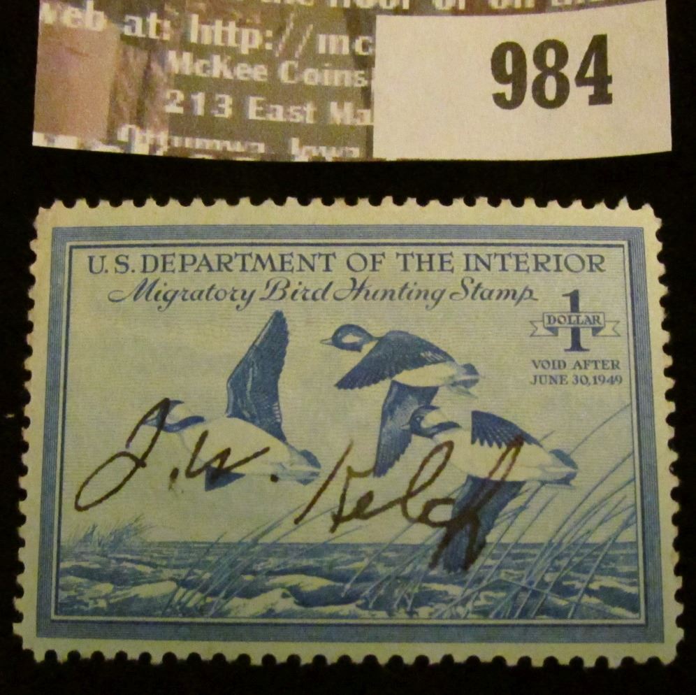 984 _ 1948 RW # 15, One Dollar U.S. Department of Agriculture Migratory Bird Hunting Stamp, signatur