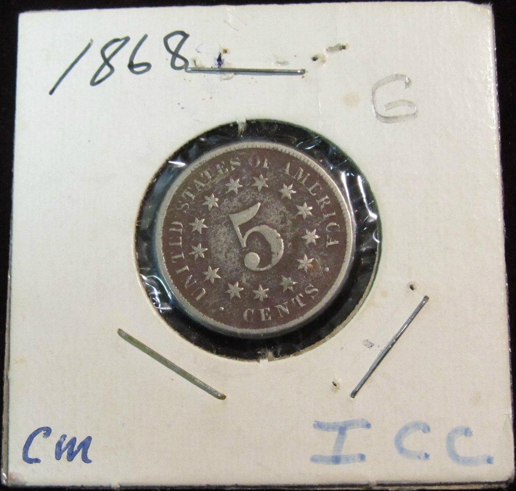 986. 1868 Shield Nickel. No Rays G.