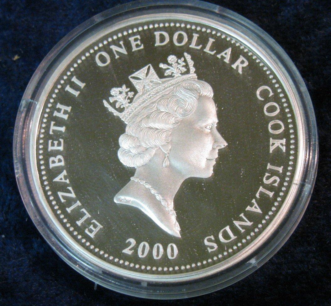 986. 2000 Cook Island Colorized Silver Dollar. Proof Like.