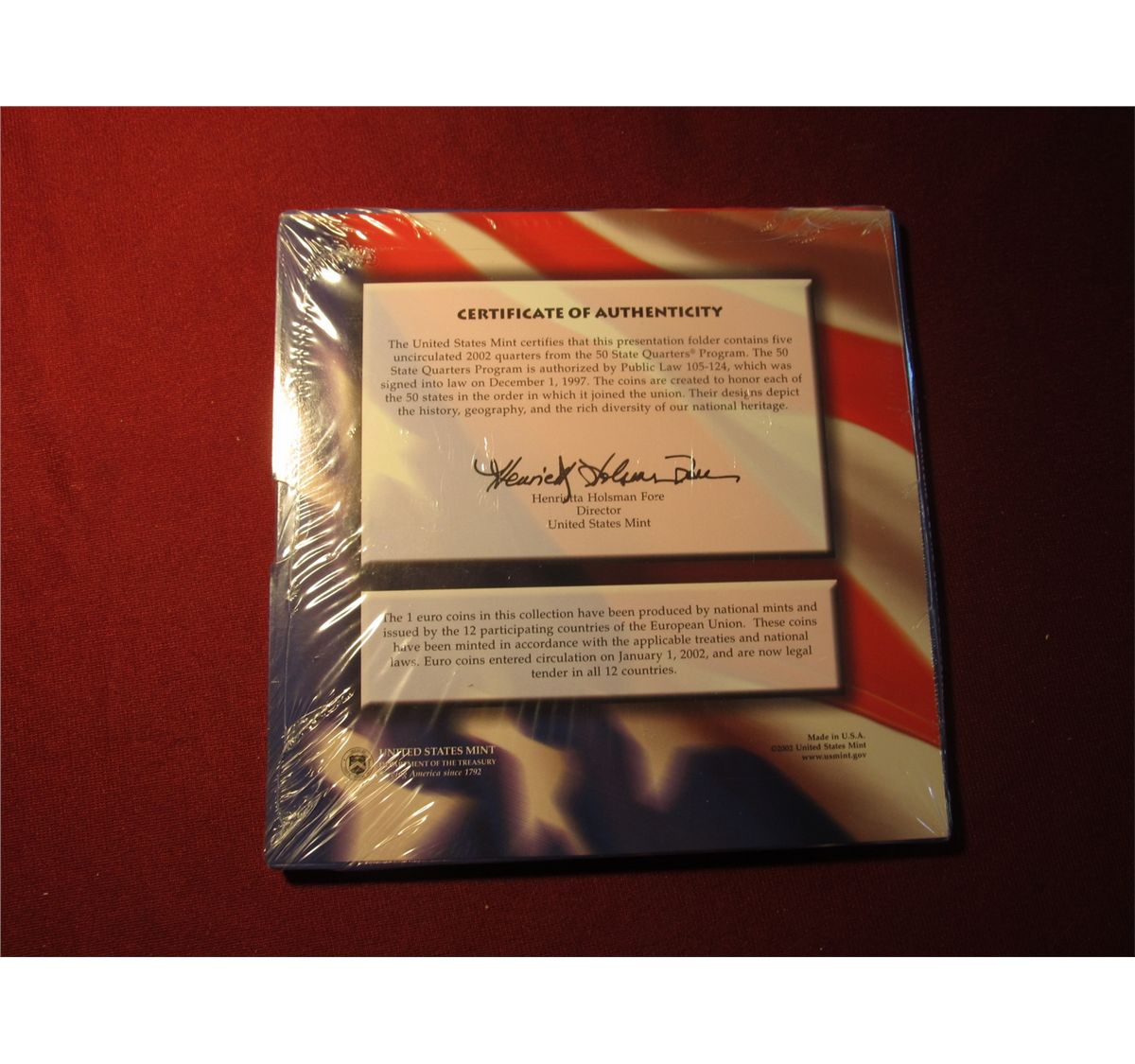986. The 50 State Quarters & Euro Coin Collection – contains 5 BU State Quarters from 2002 and 12 Euro coins from the original 12 European Union Nations