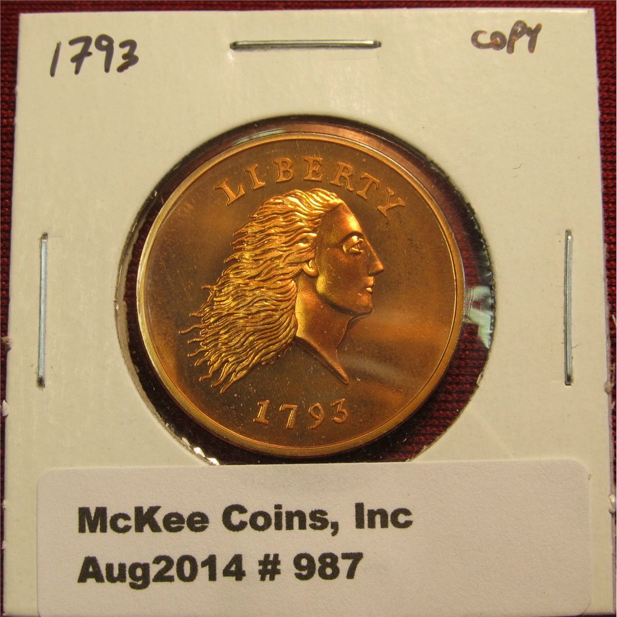 987. 1793 Chain Large Cent Proof copy, marked COPY in chain on reverse