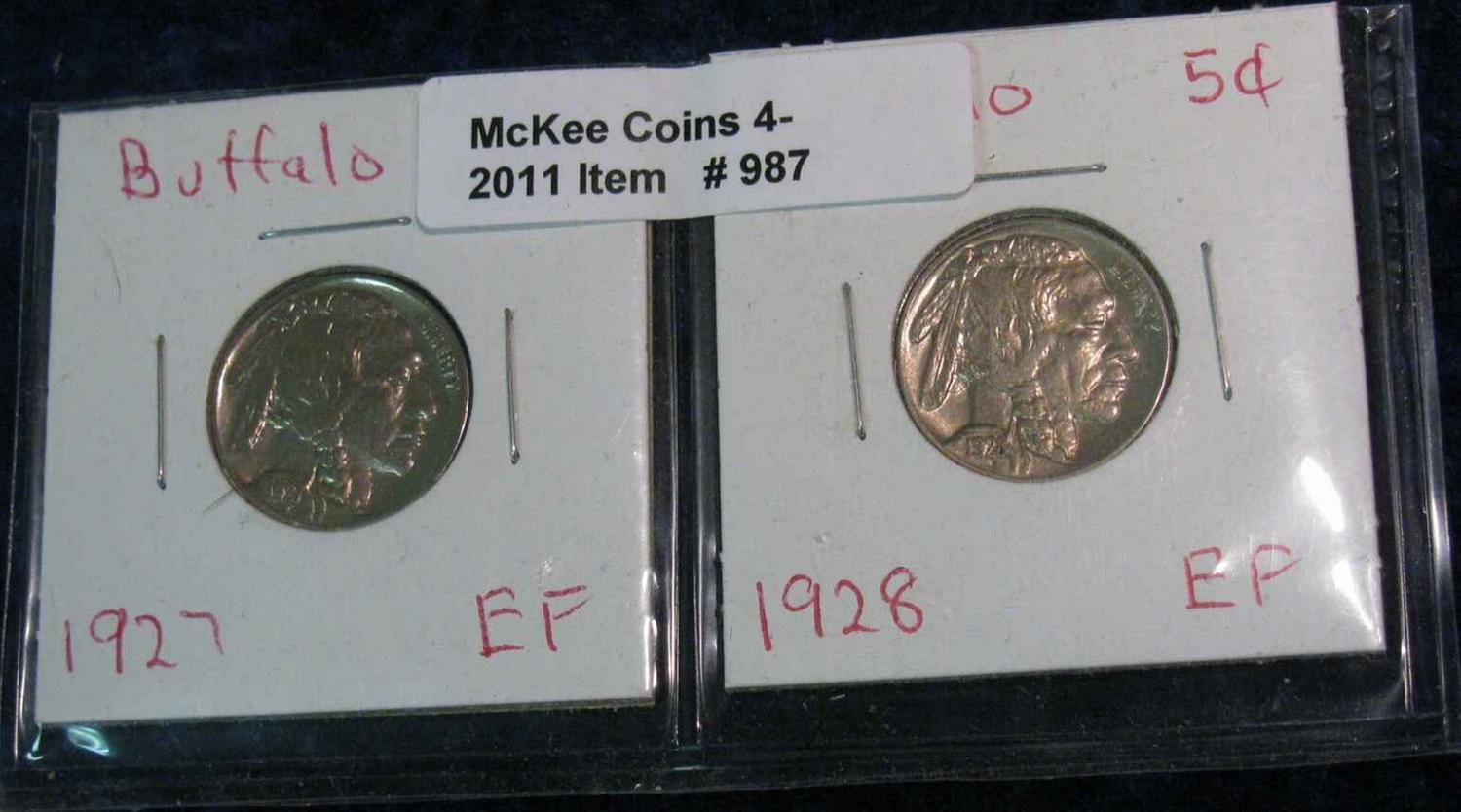 987. 1927 & 1928 Buffalo Nickels. EF.