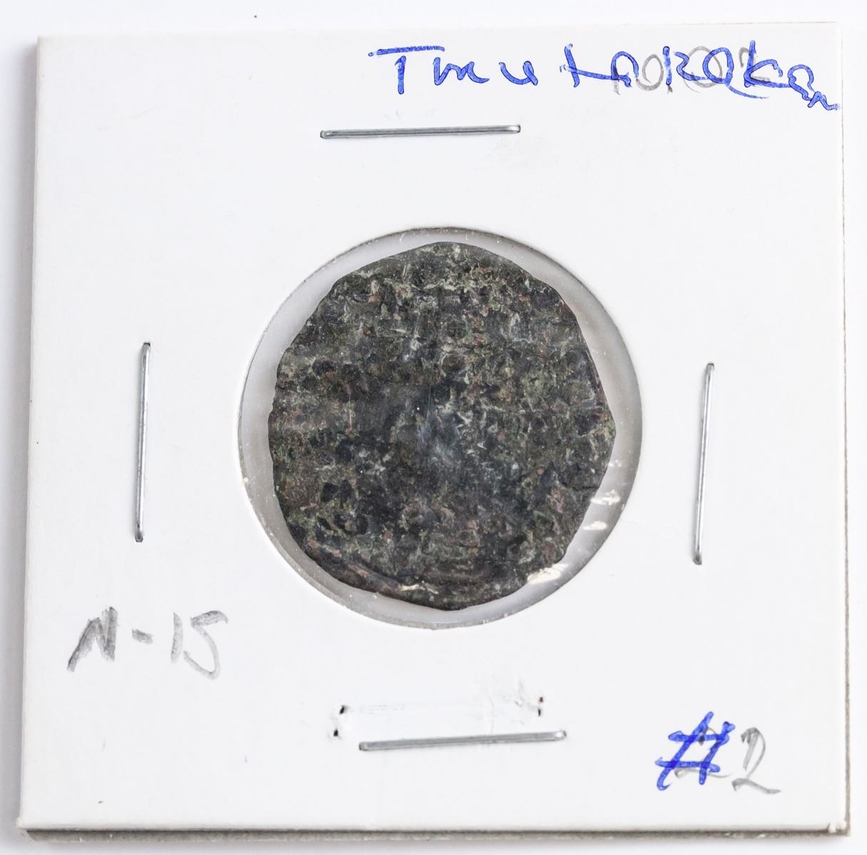 988-1036 Russian Tmutarakan copper coin. Rare imitation of a Byzantine miliaresion of Basil II and Constantine VIII. Minted by Russian Prince Mstislav (988-1036). Extremely rare. First Russian Coin. Diameter: 22.51 mm. PROVENANCE: Private collection (Virginia, United States)