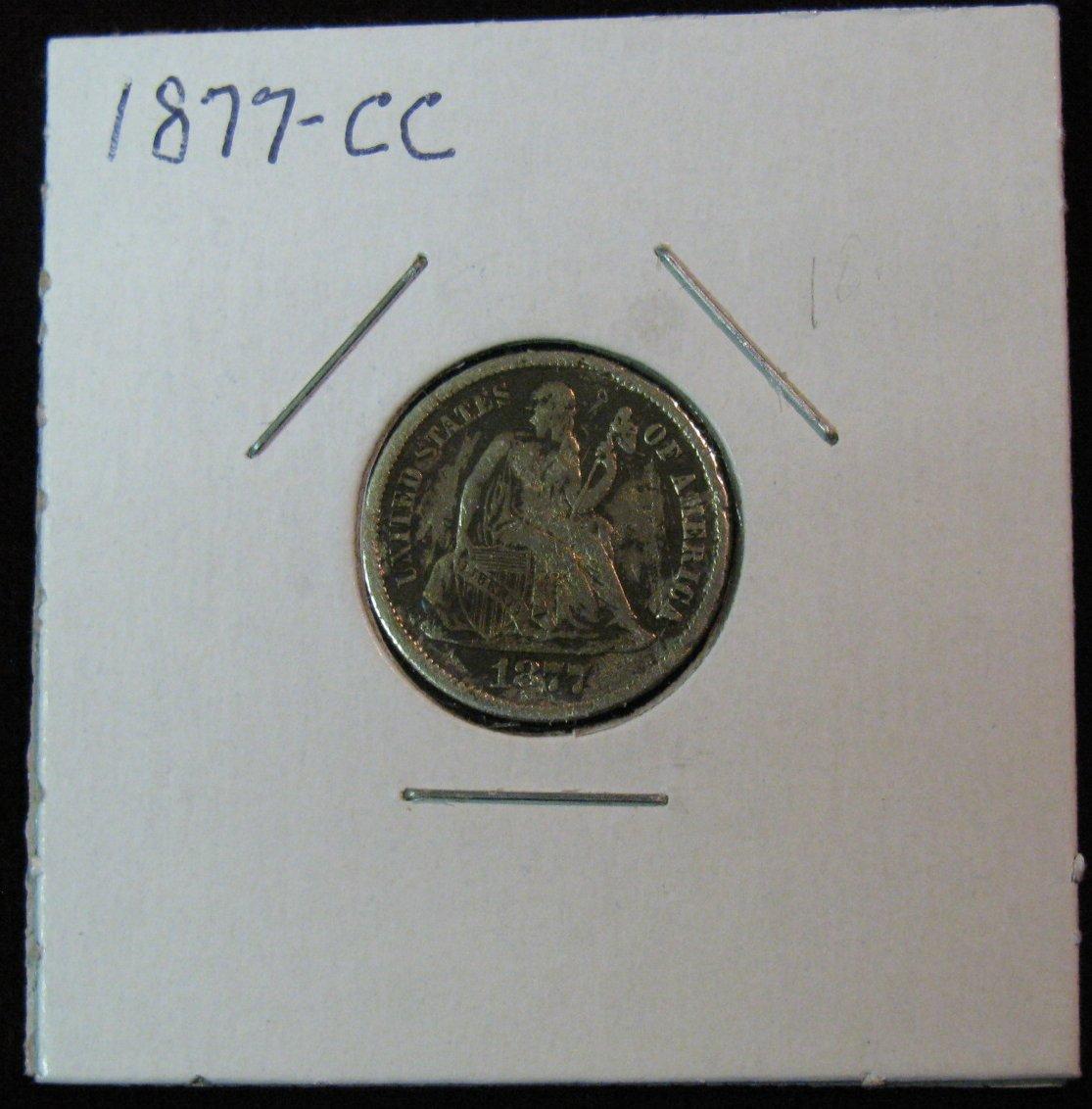 988. 1877CC Liberty Seated Dime. VG Rough Surfaces.