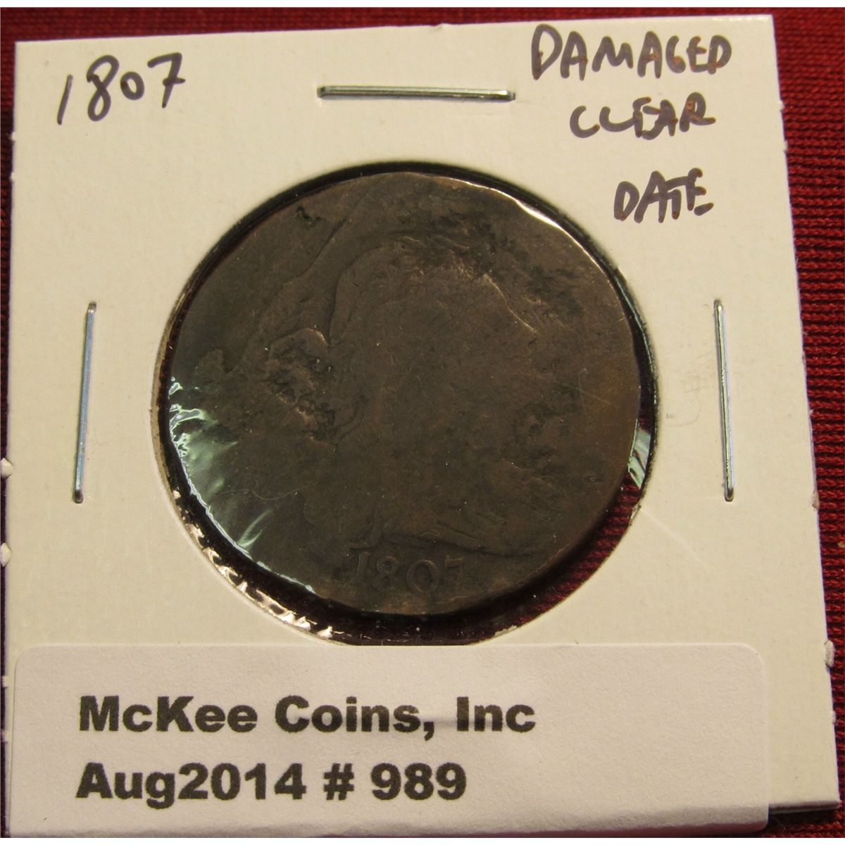 989. 1807 Large Cent AG damaged, strong clear date